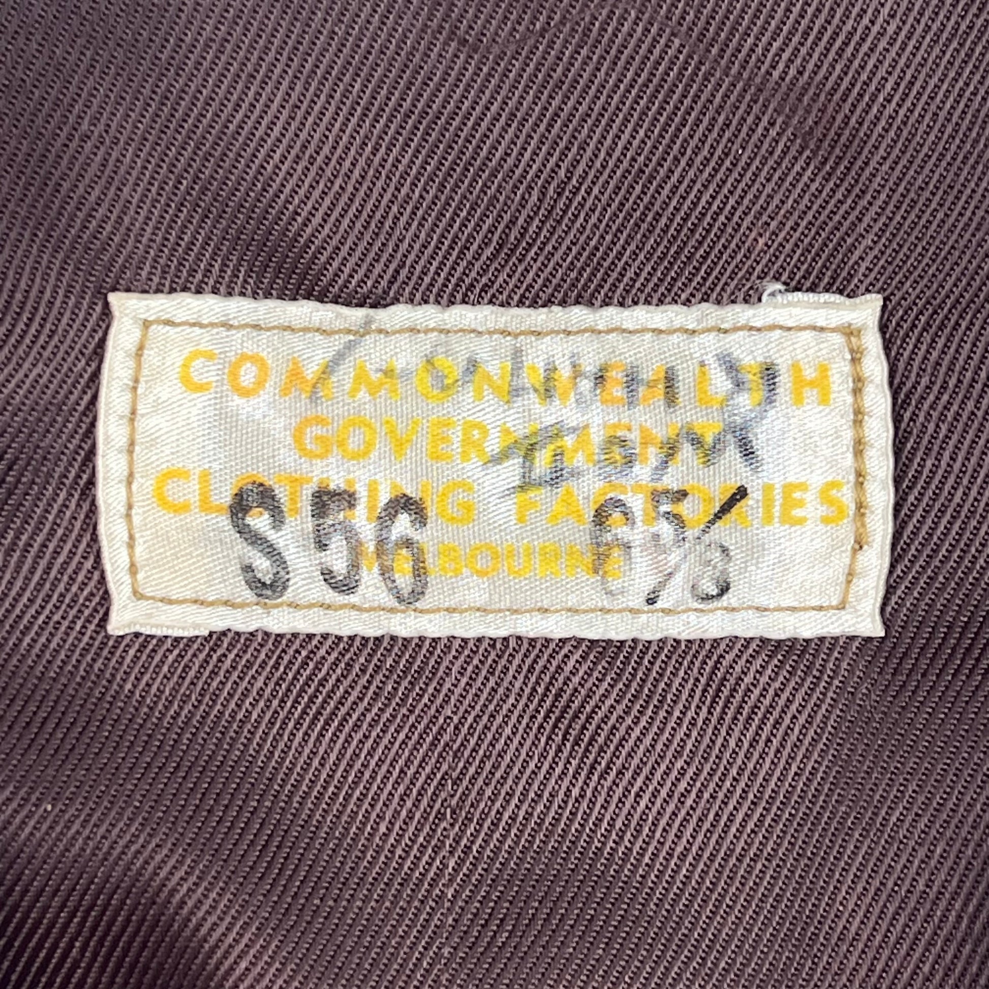- Manufactured by the Commonwealth Government Clothing Factories Melbourne