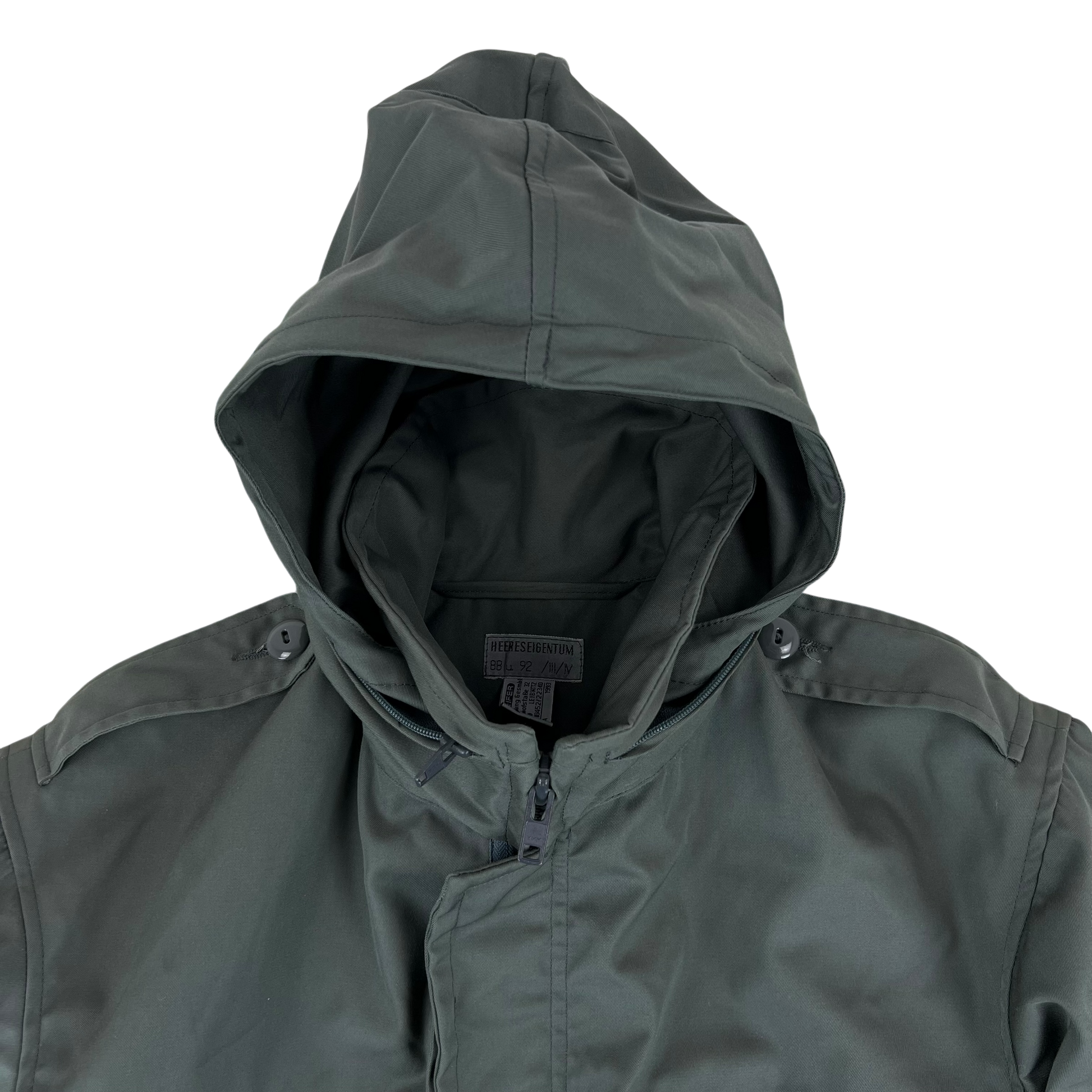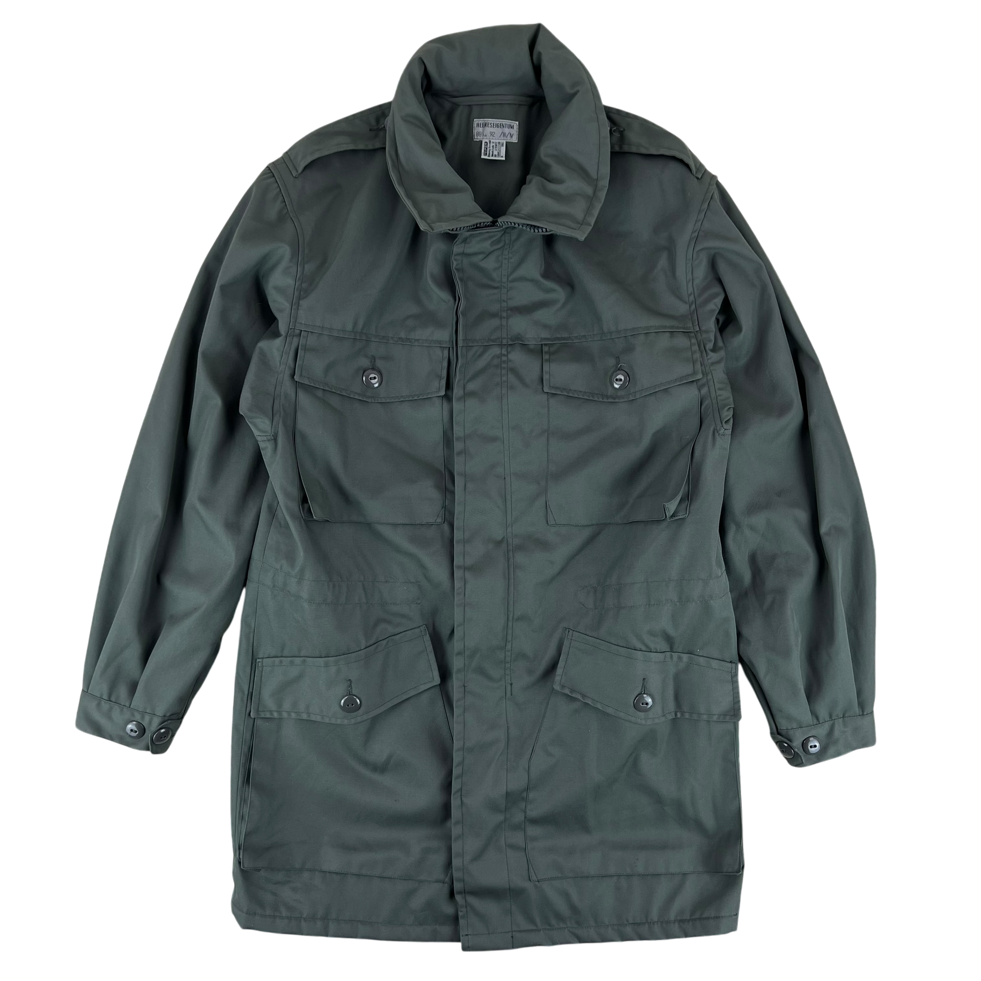 A great piece of Austrian surplus. Styled essentially as an inexpensive version of their iconic M65 waterproof jacket, this polyester wool coat still does a fantastic job against the elements. With classic choices, like full buttons over studs and drawstring hems over elastic, this coat makes durability a breeze.