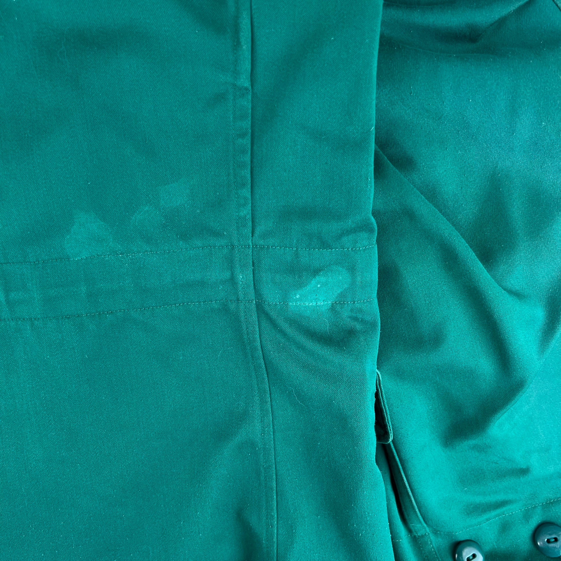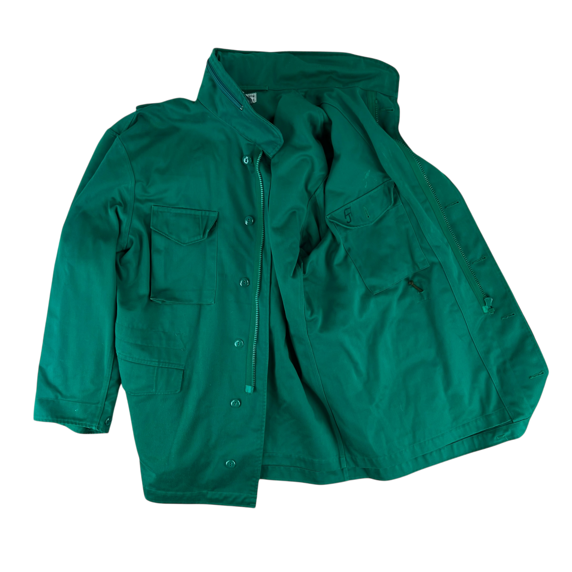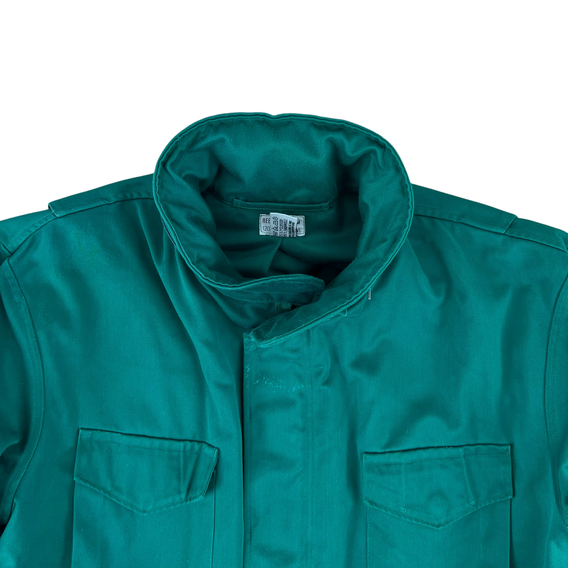 Among the seas of khakis, olives and greys that often encompass military surplus, seeing the overdyed green blue of Austrian training gear is quite a nice change of pace! Usually worn by soldiers in their early days of training, the coat has all the same features as the renowned M65 jacket, just without the goretex waterproofing.
