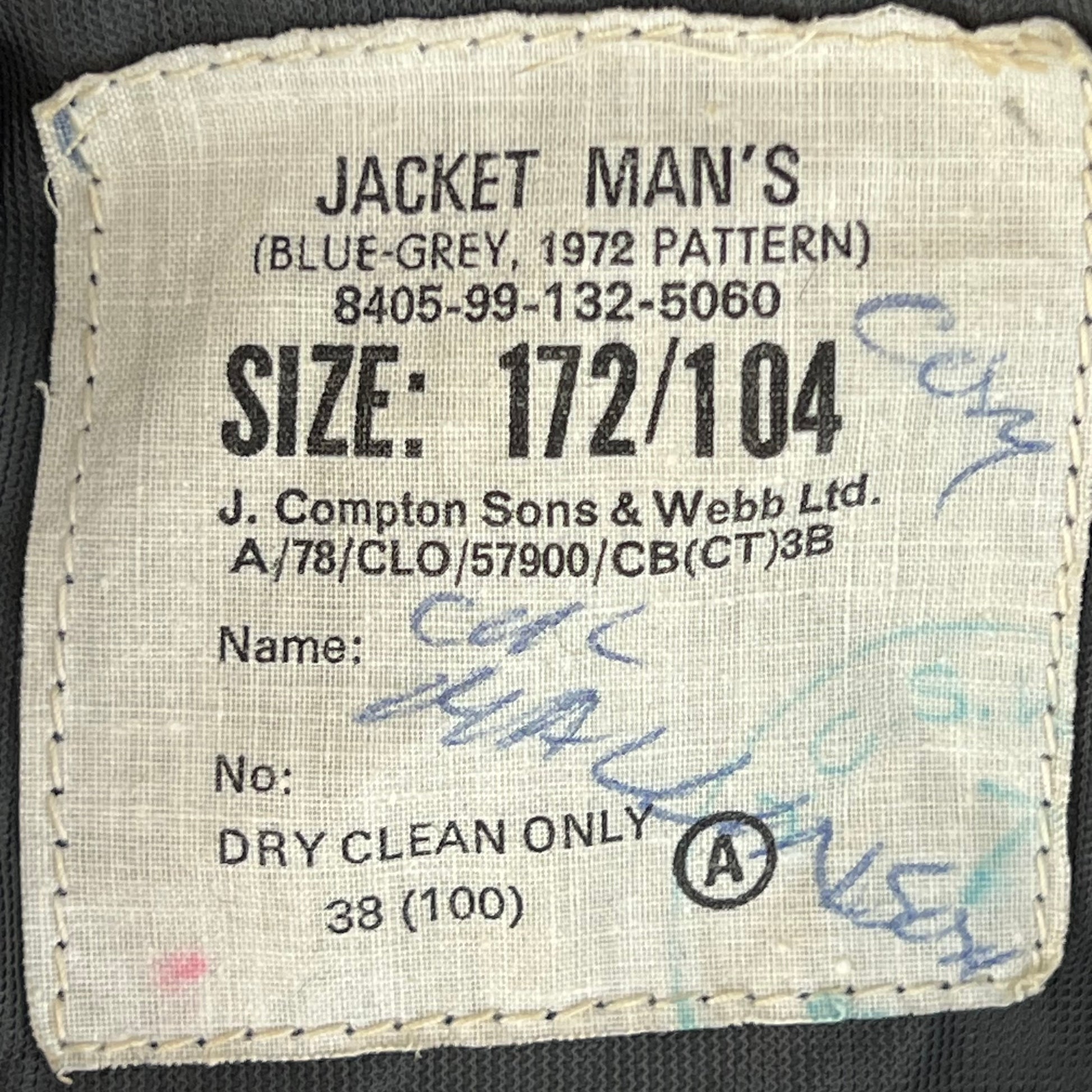 - "JACKET MANS, blue grey, 1972 Pattern"