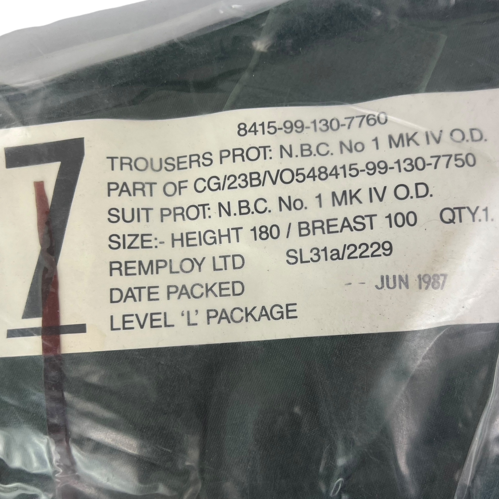 British Army 1980's Olive Drab OD No.1 NBC Mk IV Protective Trousers - 180/100