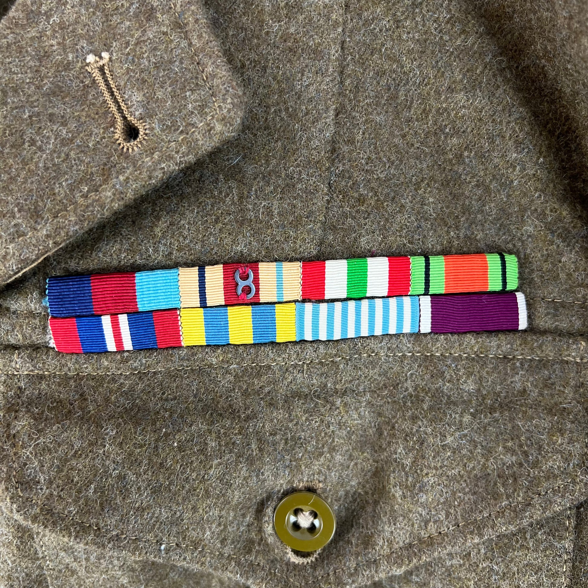 - 1939 - 1945 Star, Africa Star w/ Merit, Italy Star, Defence Medal, War Medal 1939 - 1945, Korea Medal, UN Medal for Korea / UNSMK & Army Long Service and Good Conduct Medal Medal Ribbon Bar