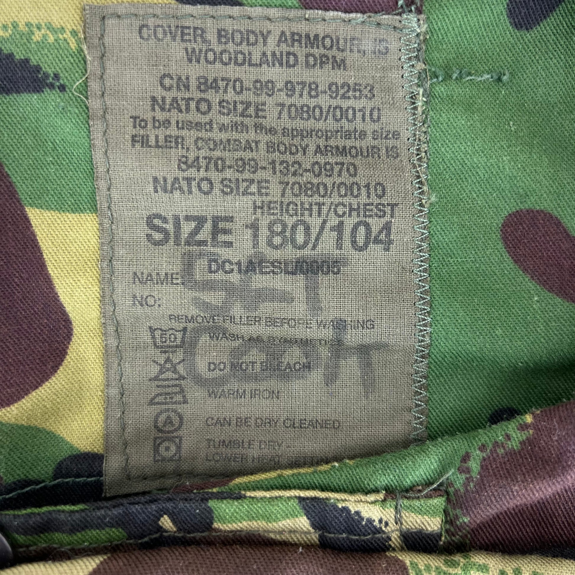 British Army S95 DPM Woodland Camouflage Body Armour Cover Vest - Large 180/104