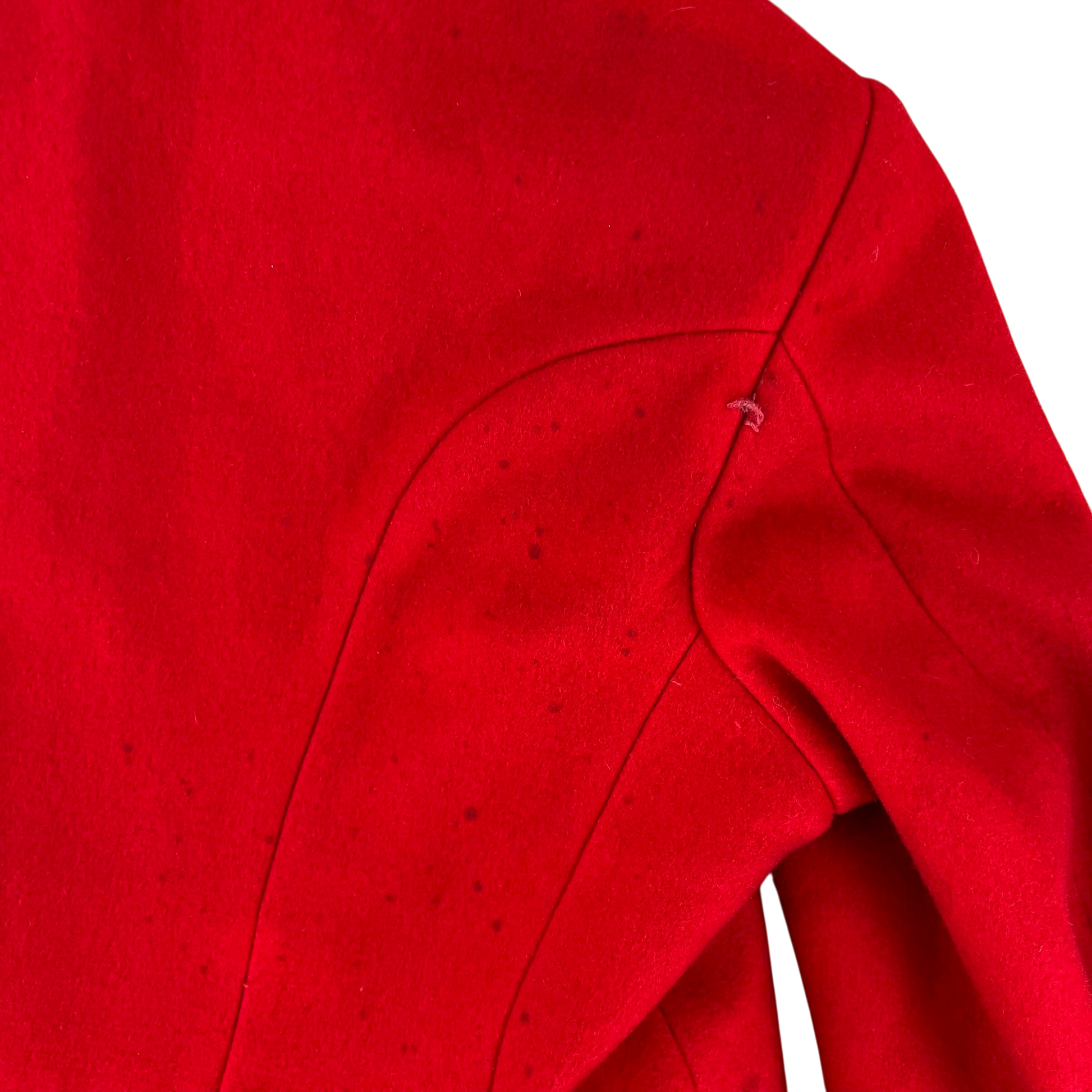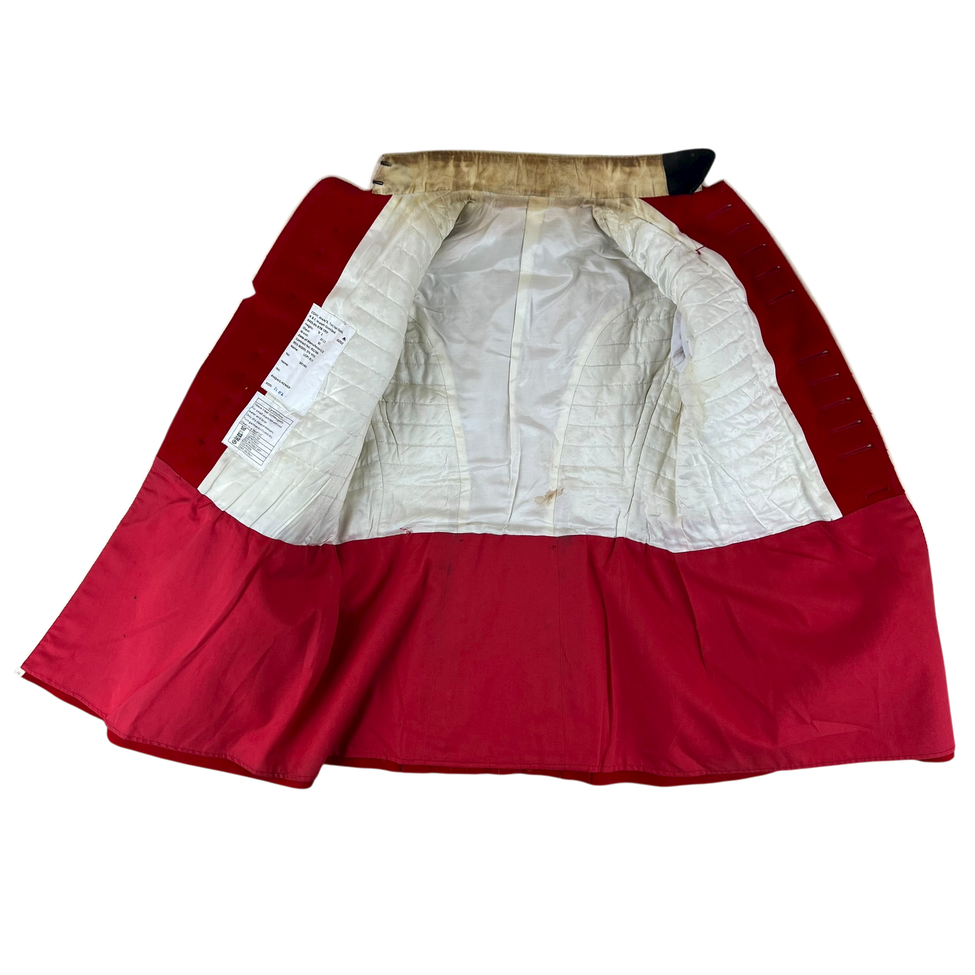 - Grade 2 / Original Condition - Previously worn and with a fair bit of use. Obviously no buttons. Various markings across the piece as shown and will need dry cleaning or reworking. Yellowing on the collar. Please see photos for details.
