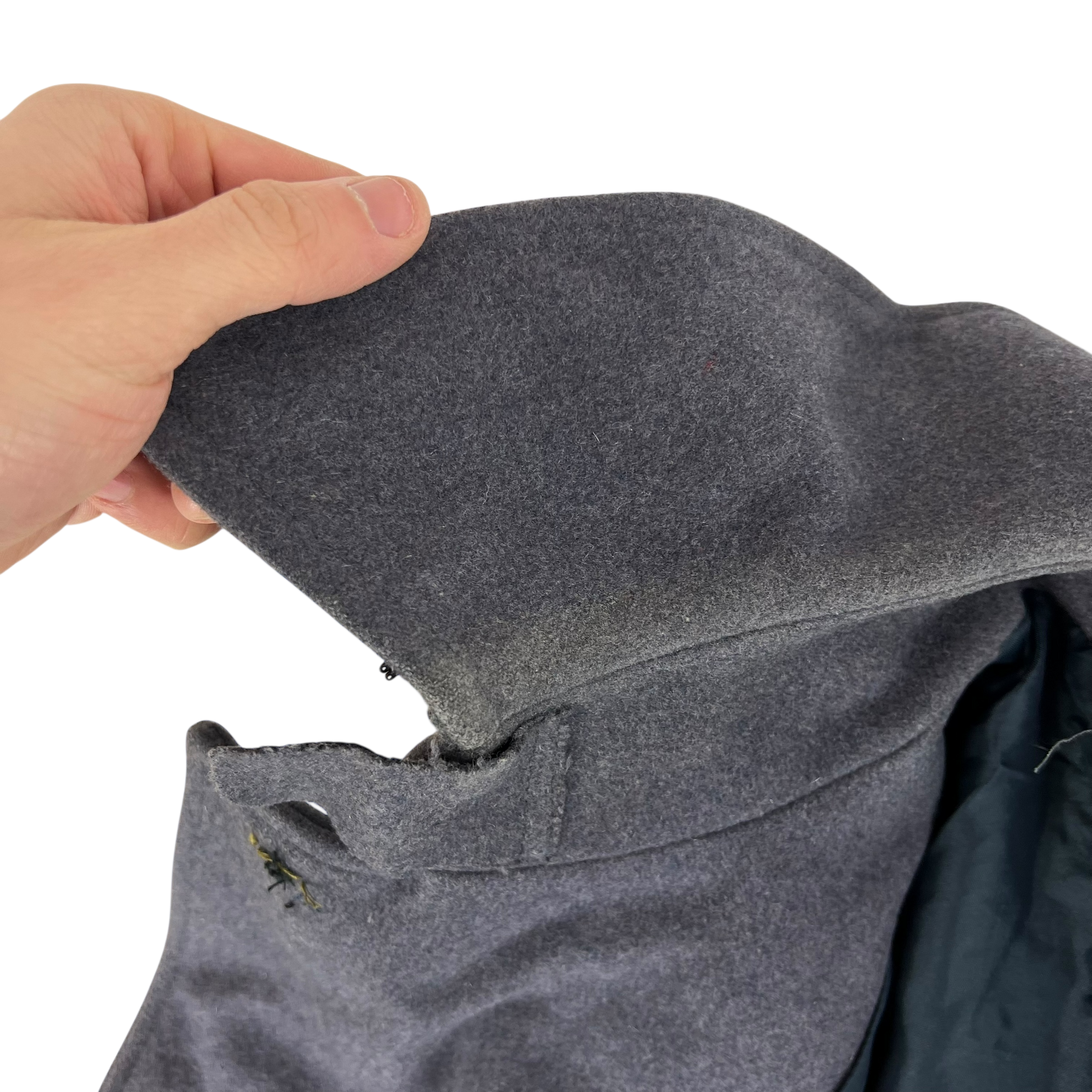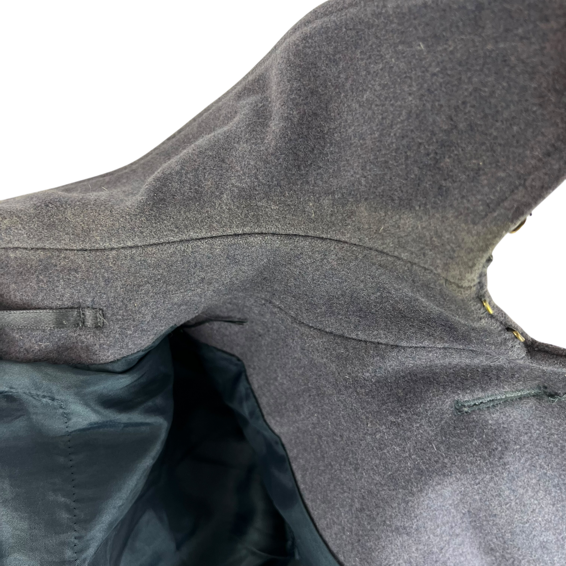 - Grade 1 - In good shape. Some wear around the collar as shown. Snippet out of the hem is MOD surplusing standard, but doesn't noticed when shut. Obviously buttons are missing, so new ones will be needed but all in all a nice project piece.