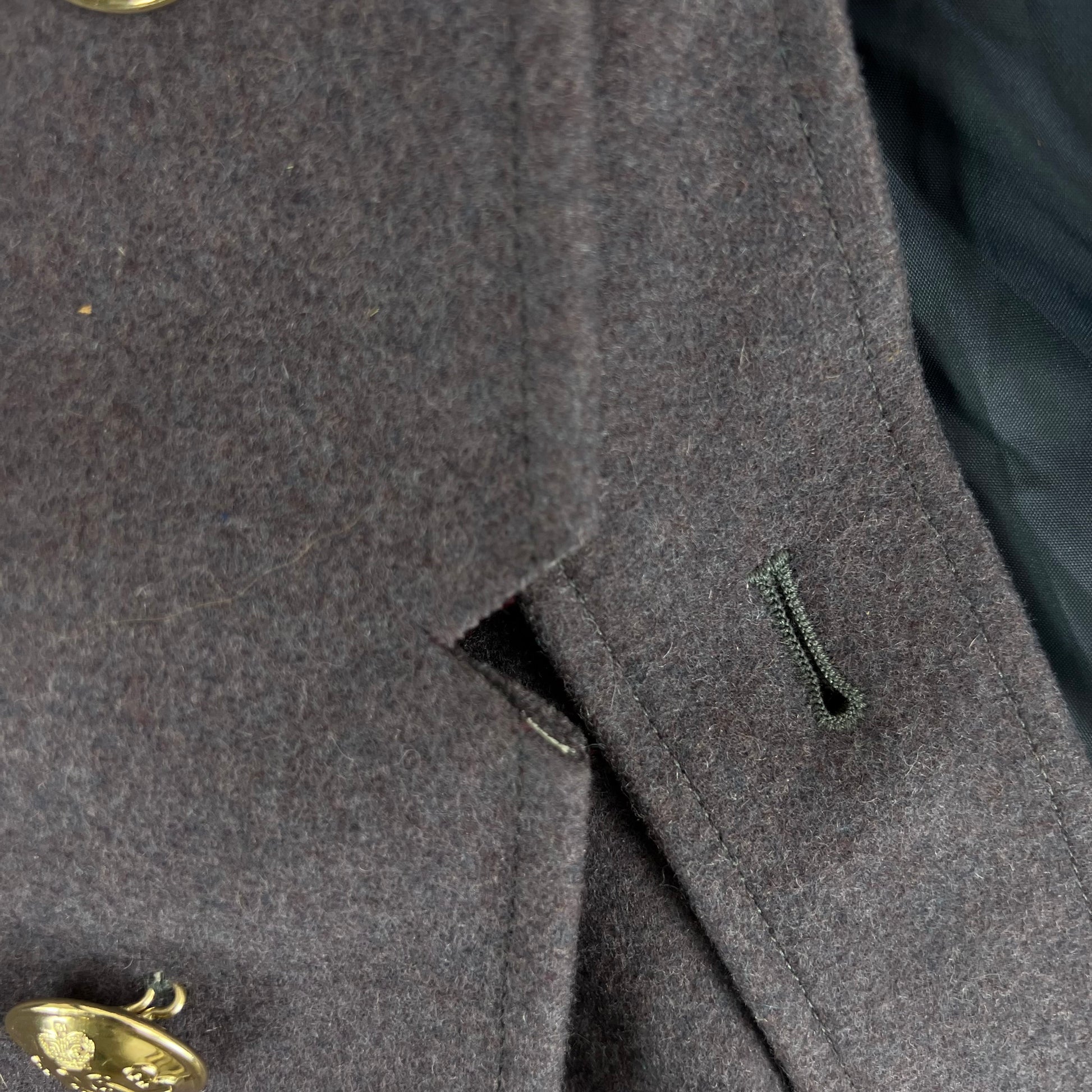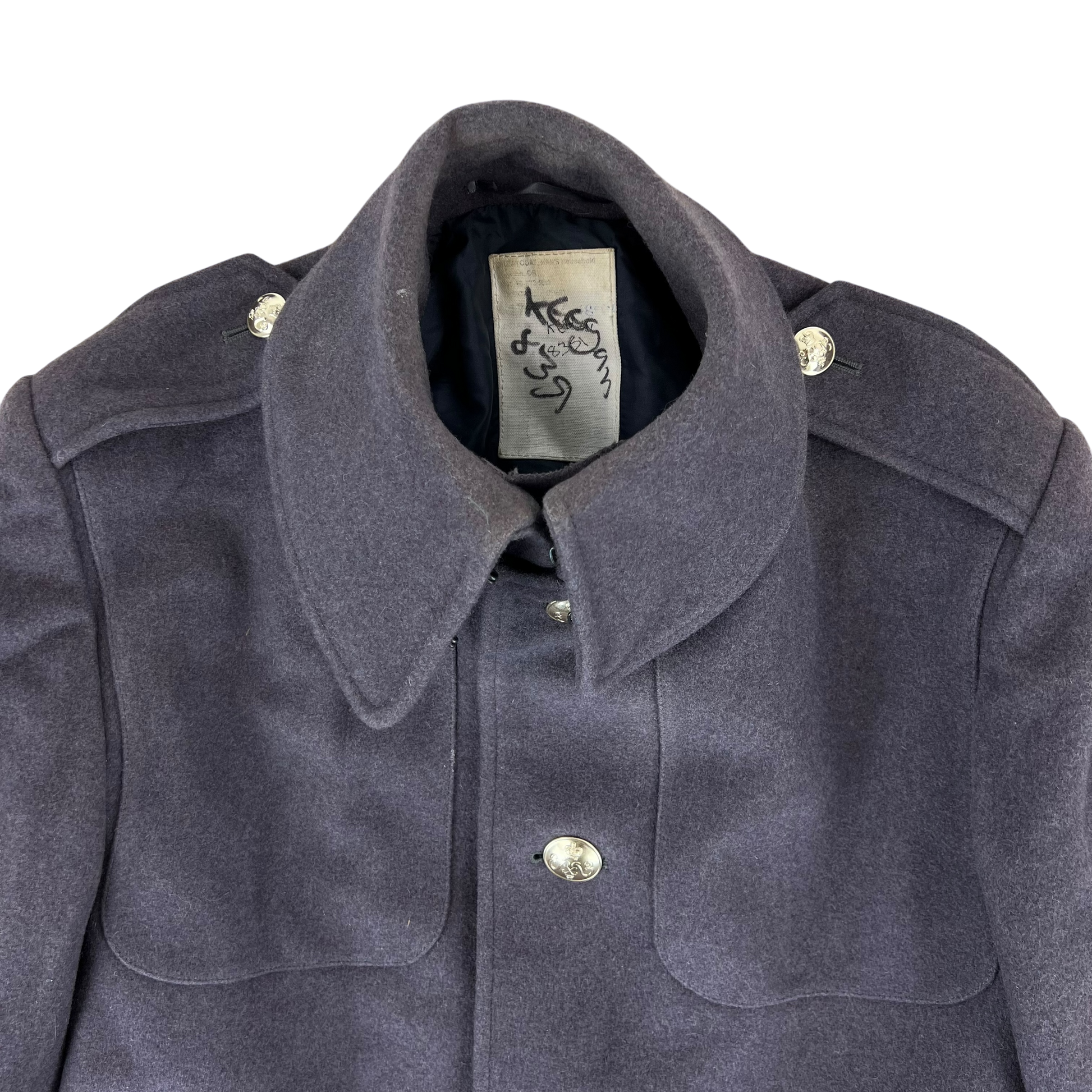- Grade 1.5 - In good shape, no holes or tears aside from the small snippet on the inner hem which is MOD surplusing standard protocol and does not notice when buttoned shut. There is a bit of wear and discolouring on the collar so may benefit from dry cleaning. No back belt buttons have been added.