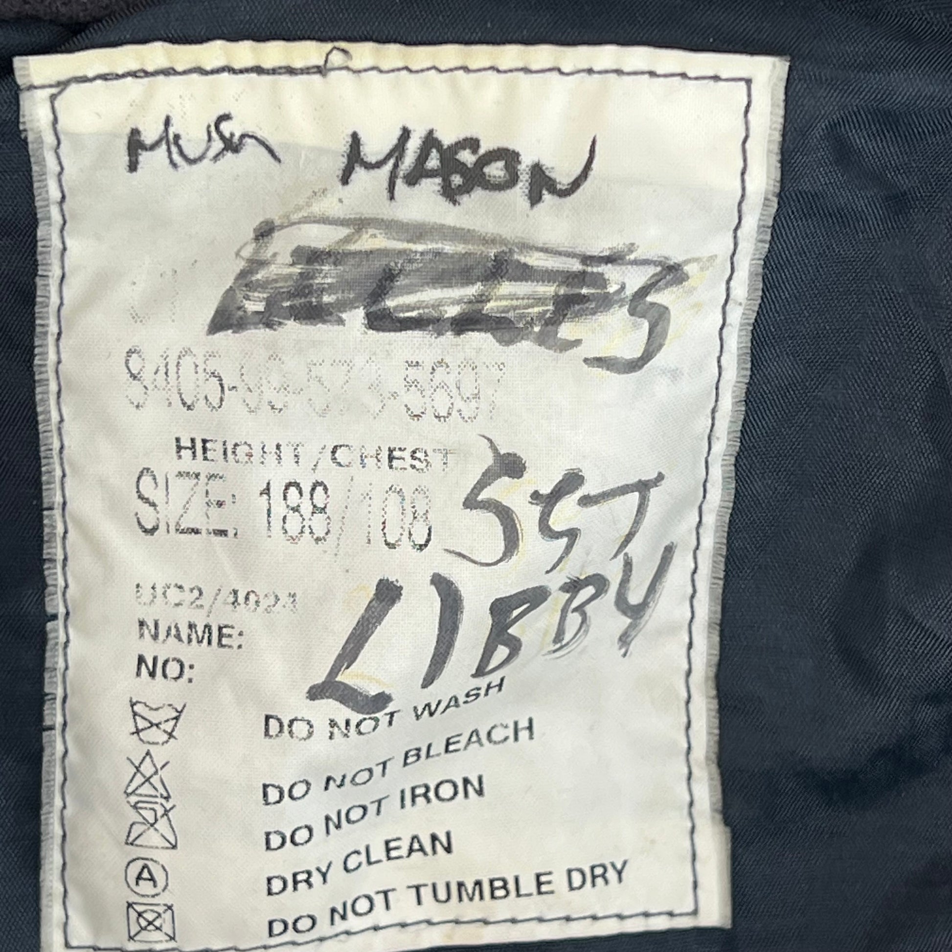 - Shoulder to Cuff: 27" / X Long - Label recommends a height around 188cm