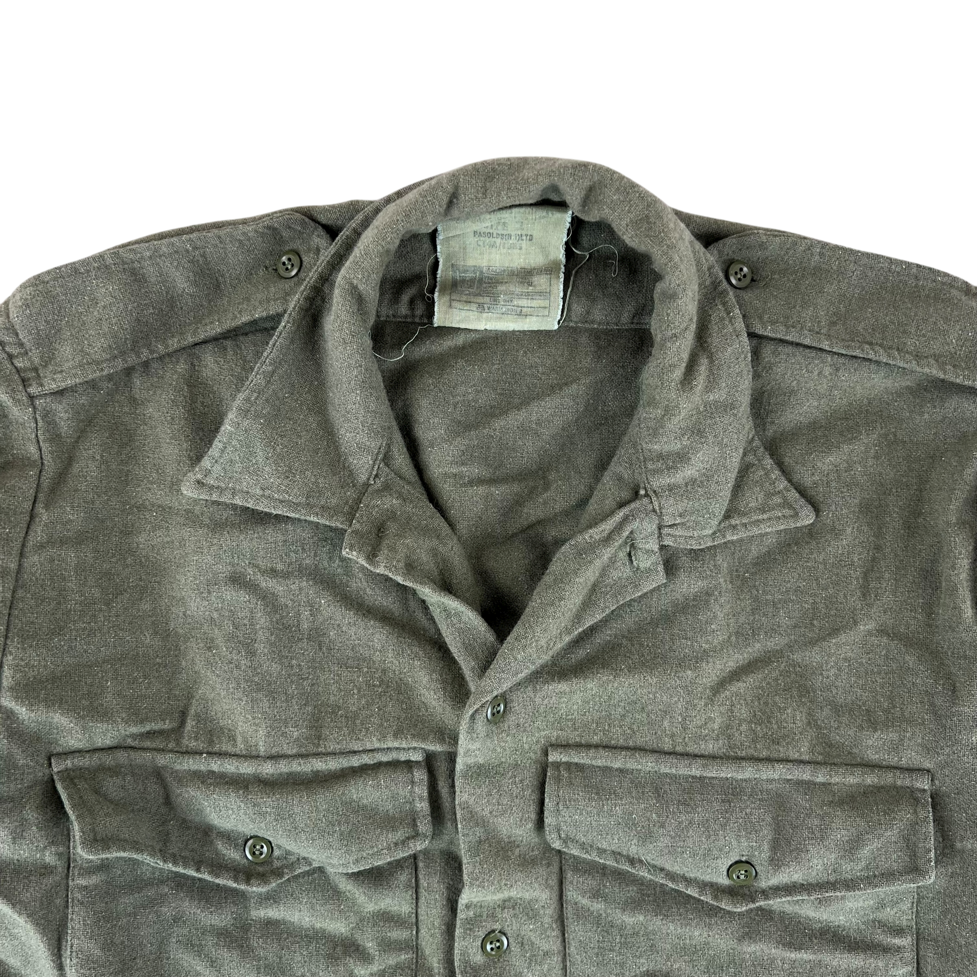 British Army Mens Olive Green Wool Shirt Long Sleeve - Medium SIZE 2