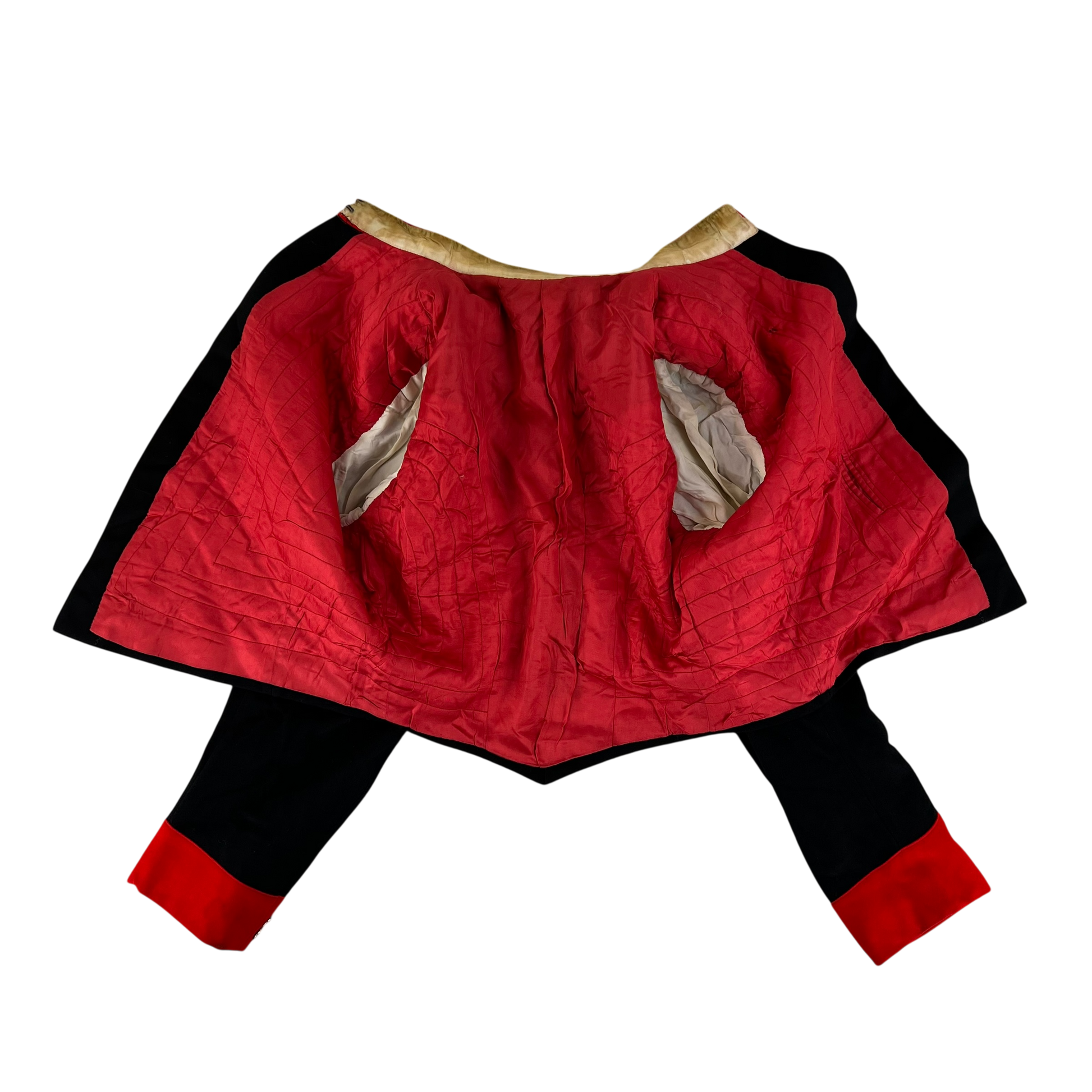 - Grade 2 / Original Condition - In decent shape but there's aging / patina on the bullion thread detail around the collar. Some markings on the cuff backs too and yellowing on the collar as shown. Still a great costume or prop piece. Would benefit from dry cleaning.