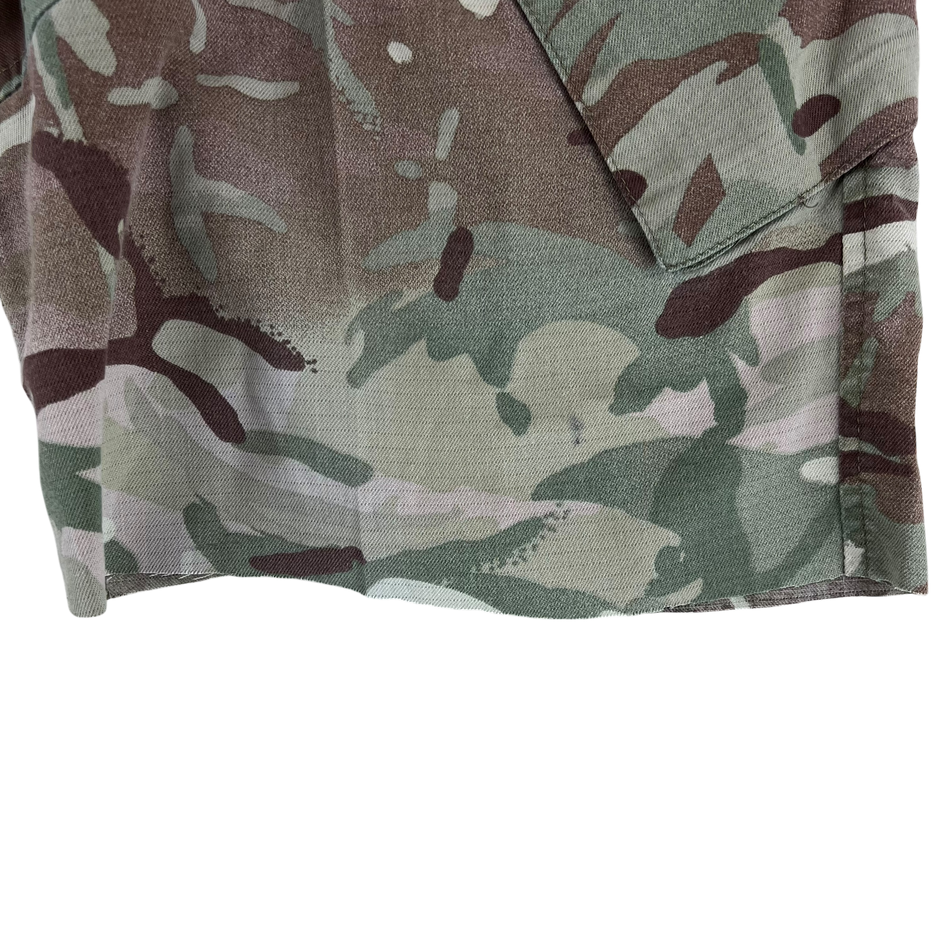 - Grade 1 / Original Condition - A fantastic example of tailoring that soldiers in the field get up to. Originally a full pair of trousers, these have been cut into cargo shorts by the previous owner. The ends of shorts haven't been hemmed, but work great for a more rugged look. Some light signs of prior use, namely a bit of wear by the one pocket, but over all in good shape and certainly ready for more use.
