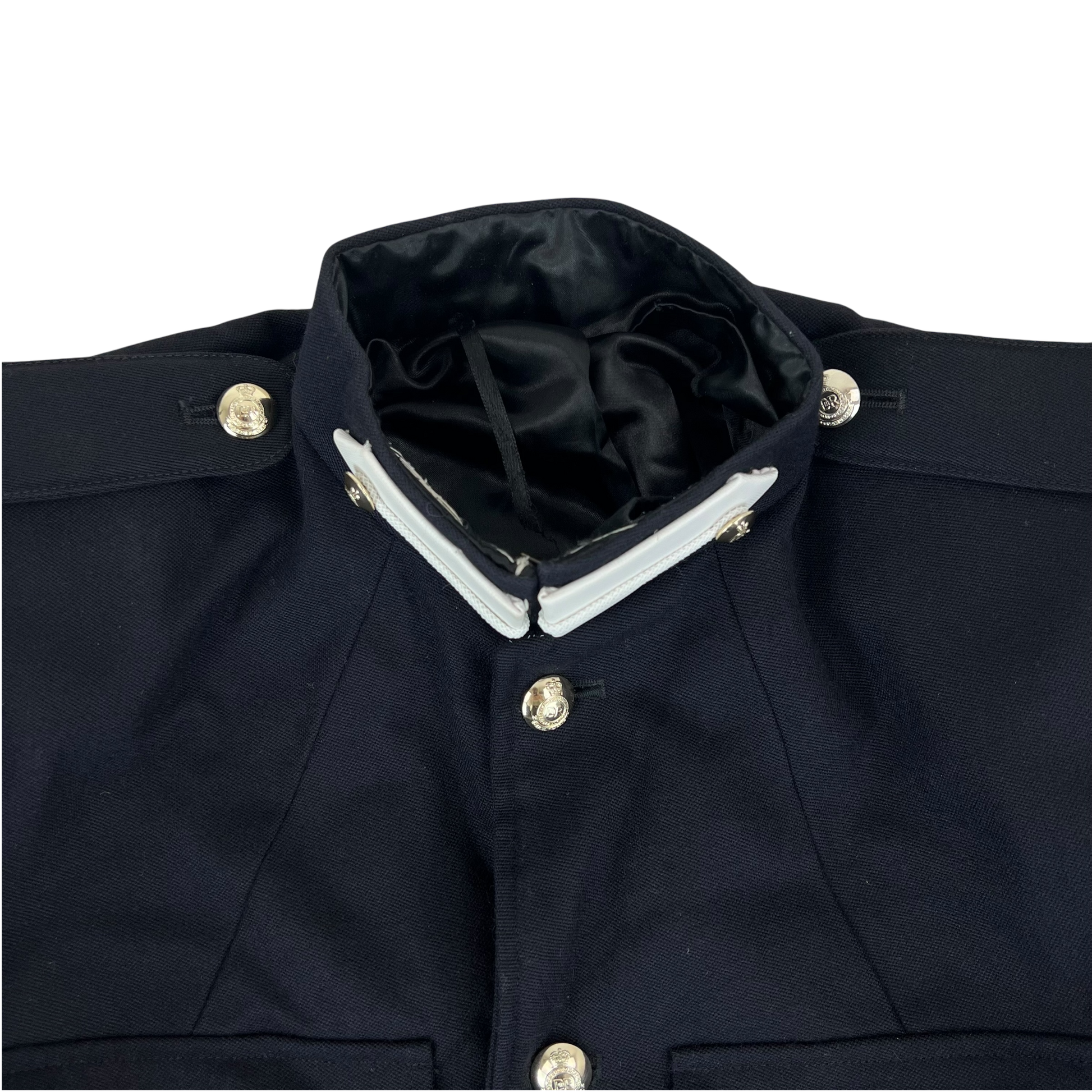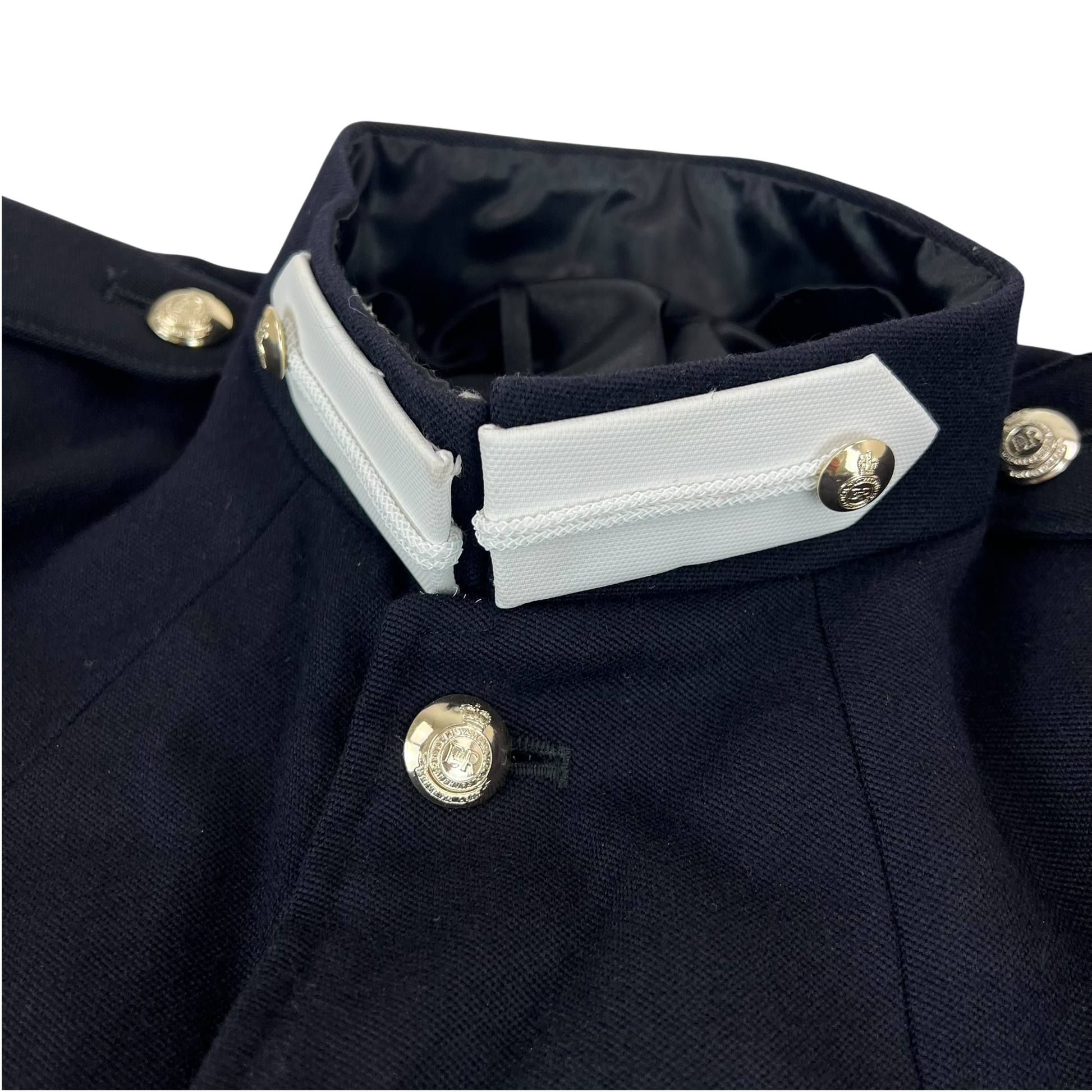 Beautiful elegant ceremonial dress from the British Army. No. 1 dress is the highest level of dress uniform most soldiers will wear, and is earned after a good few years in the army, with each part of the uniform being tailor made. This particular jacket would've belonged to a member of the Royal Military Academy at Sandhurst, an officer's school which trains the next generation of Britain's commanding staff.
