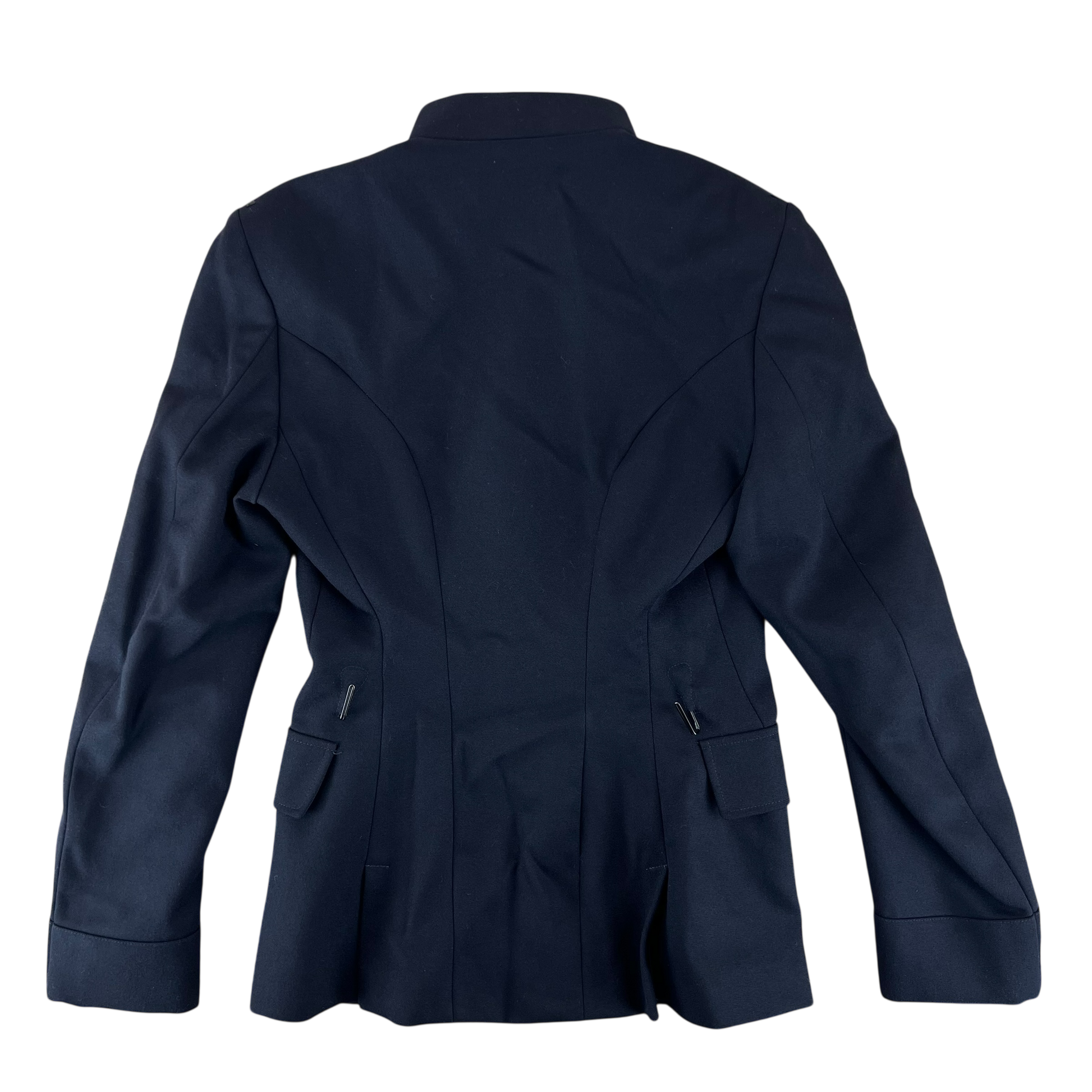 For features, it is quite a simple jacket, made from 100% wool. There's 4 pockets in total, 2 flap and 2 buttonable flap pockets, arranged in the typical "safari" style, with 2 on the hips and 2 on the chest. The collar is mandarin style, being closed with 2 hook & eyes. On the shoulders you'll find shoulder epaulettes, usually designed to secure ribbons and other sashes during ceremonial events. For the colour, it is a very dark navy blue, bordering on black.