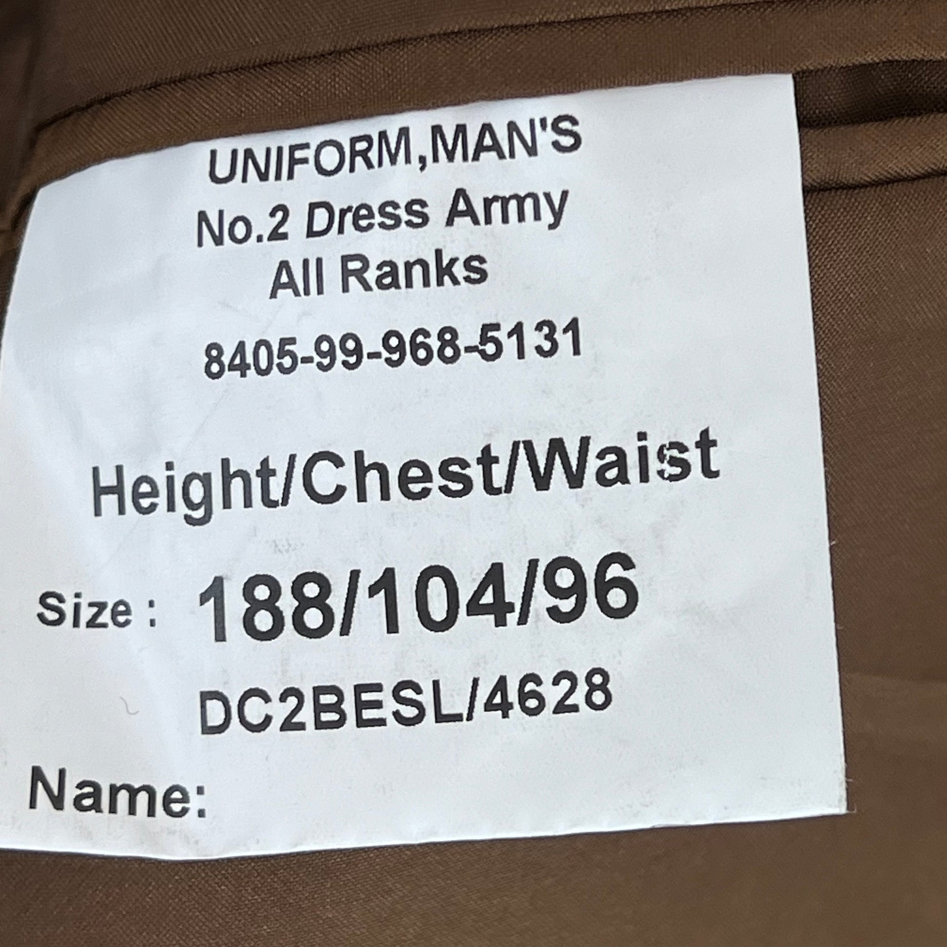 British Army No. 2 Brown Dress Jacket - REME - Large 188/104