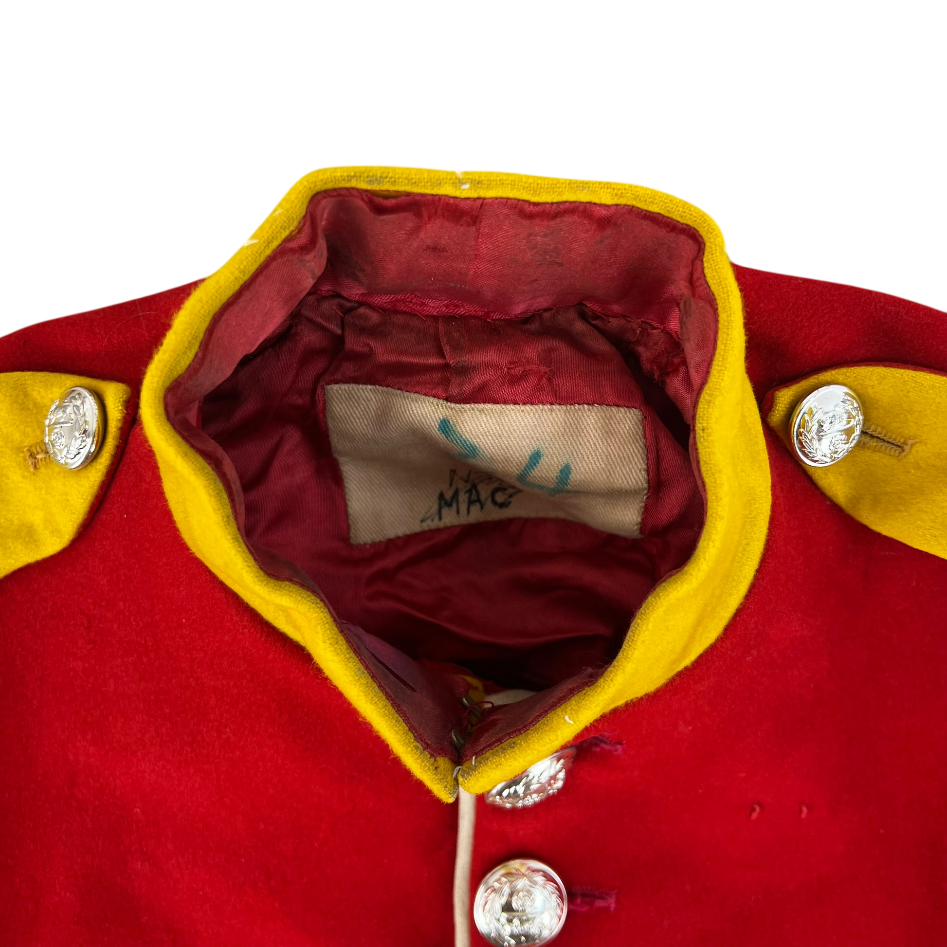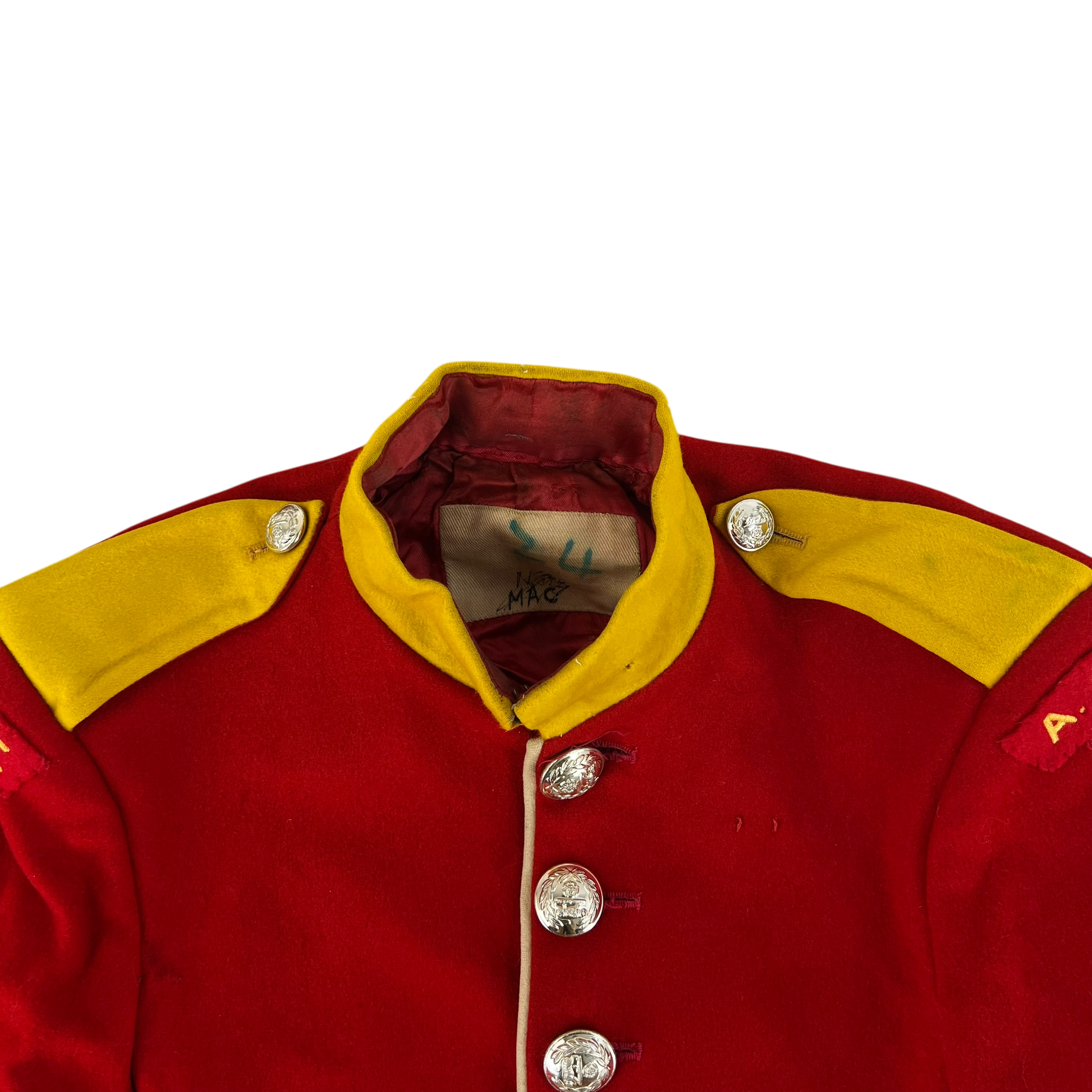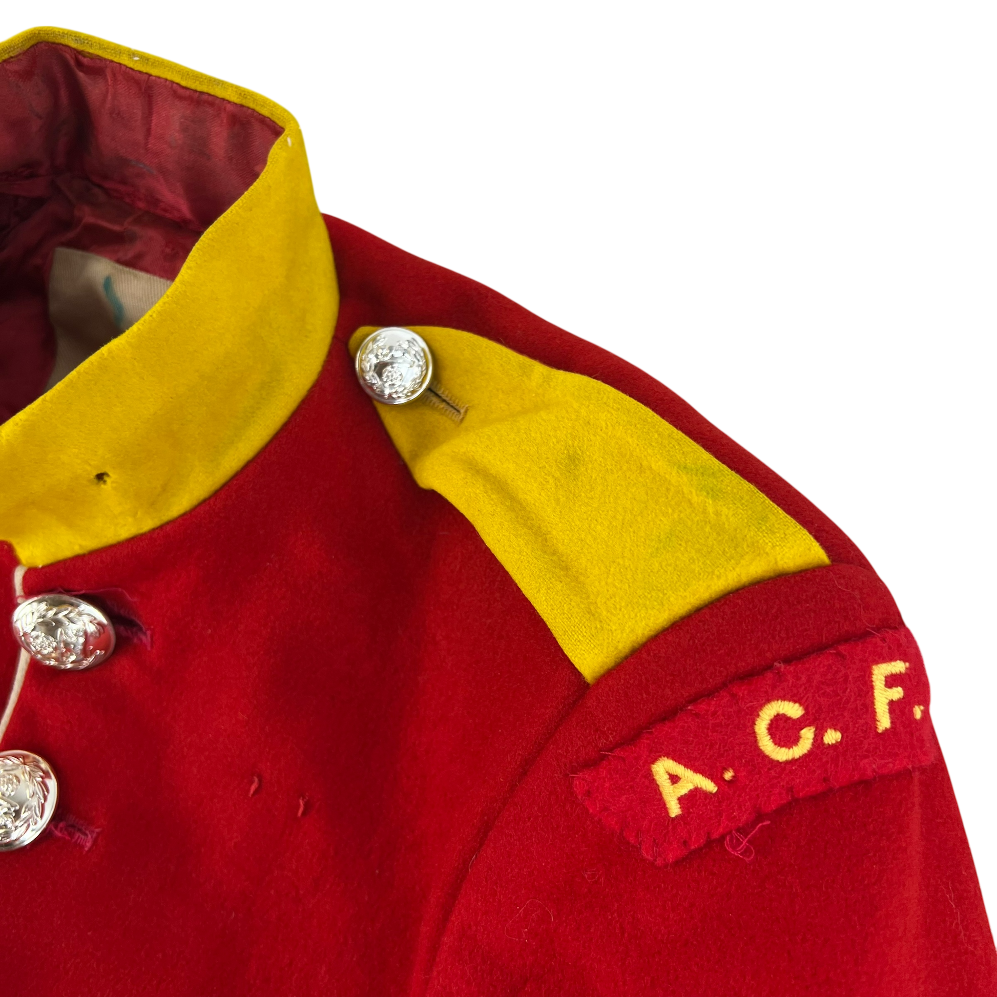 - Grade 2 / Original Condition - In need of a dry clean as there's a few markings across the piece. Some tarnish on the buttons too but all present. General signs of prior use and age. Wear on some sections such as the cuffs etc. Up for much more use if given some care