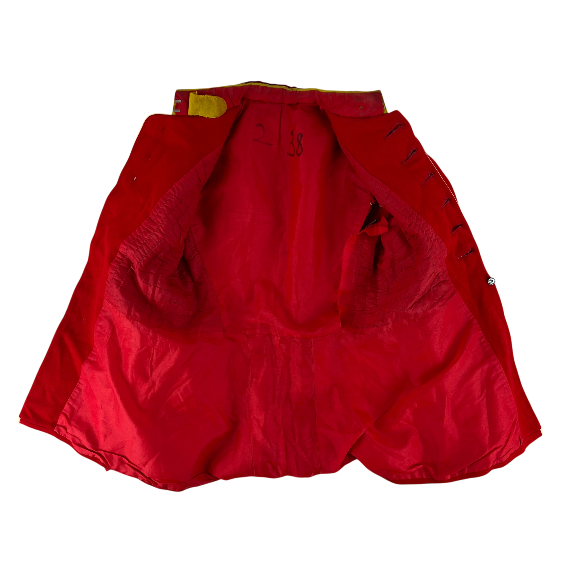 - Grade 2 / Original Condition - In need of a dry clean as there's a few markings across the piece. Will need some stitches too given the inner lining and collar. Some tarnish on the buttons too but all present. General signs of prior use and age. Wear on some sections such as the cuffs etc. Up for much more use if given some care. Great project piece