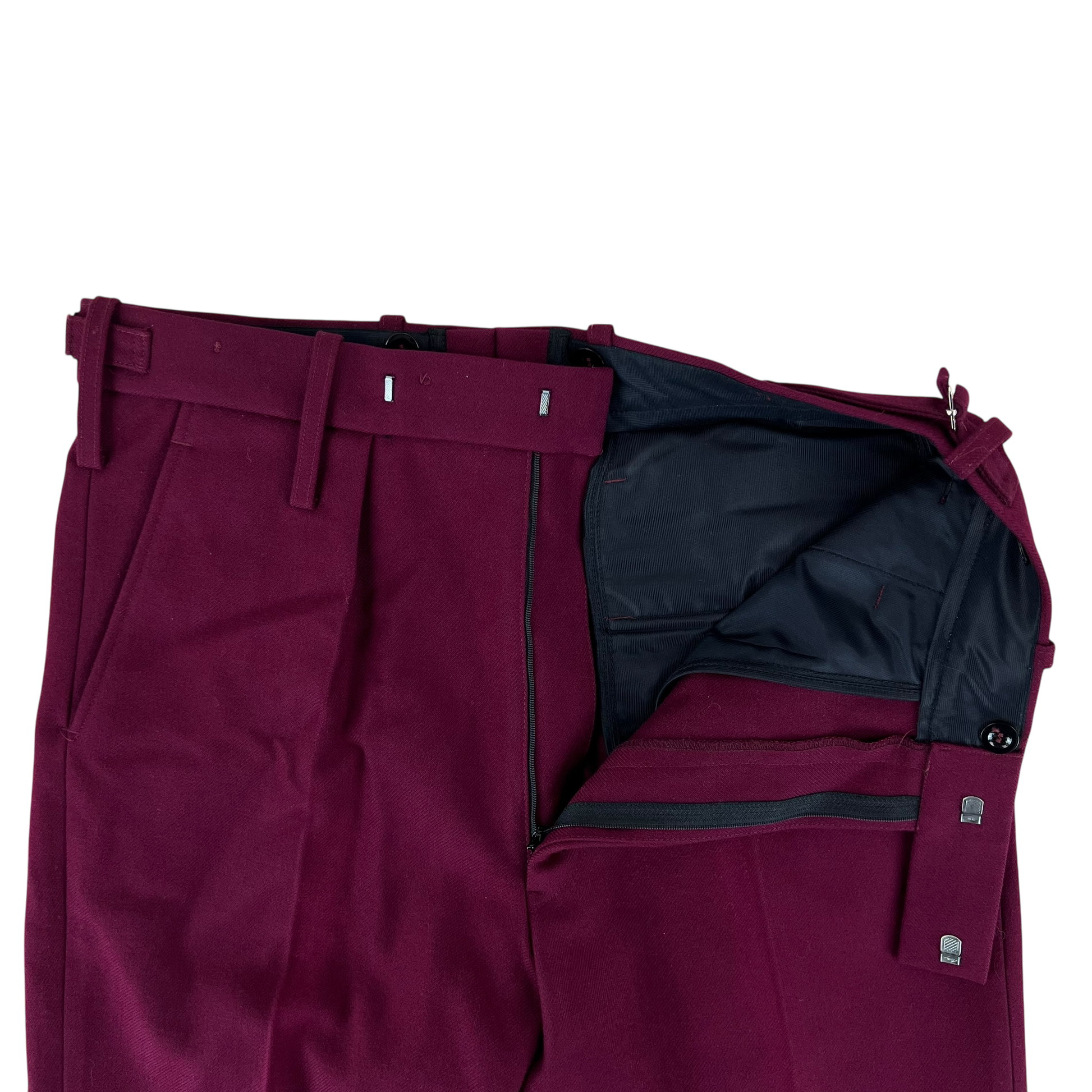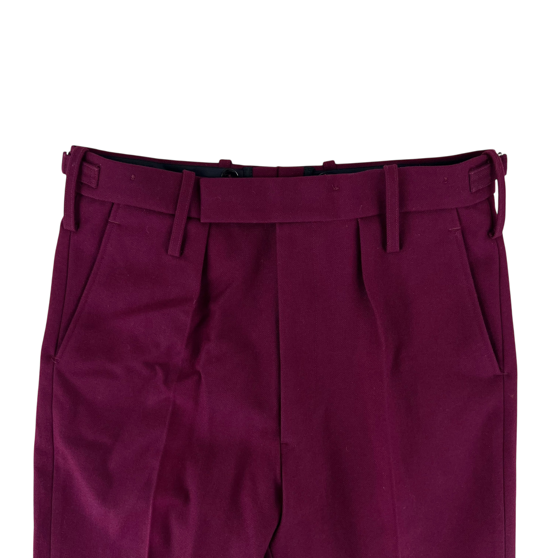 For features you'll find 2 front waist pockets and 2 rear pockets. The trousers offer 2" belt loops or as worn by officer's internal suspender buttons. The waistband is fastened with a zipper and hook & eye closure. Each trouser leg is beautifully pleated front and back making for a timeless look even in a more unusual style.