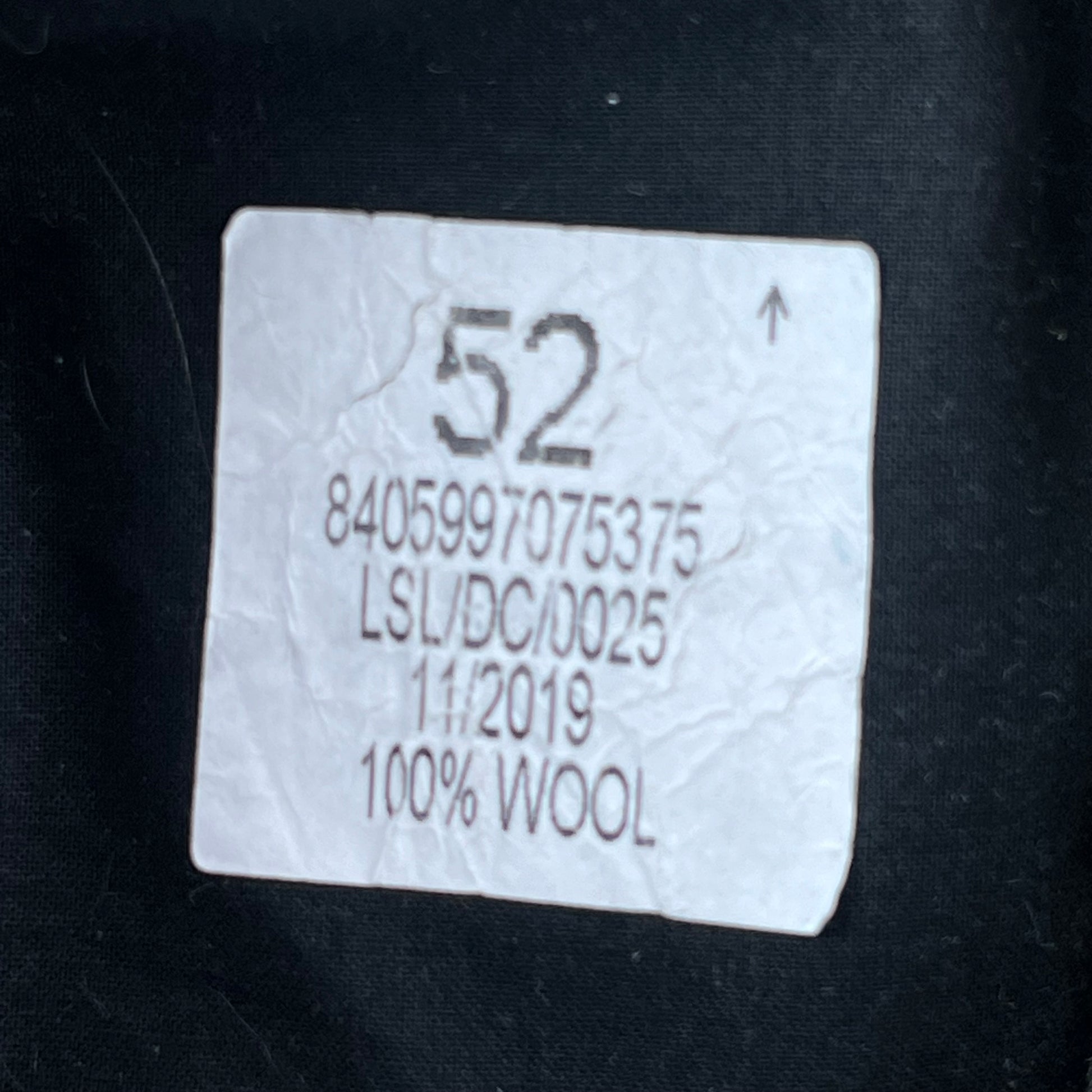 - Label reads 52cm | Suggested Size: X Small