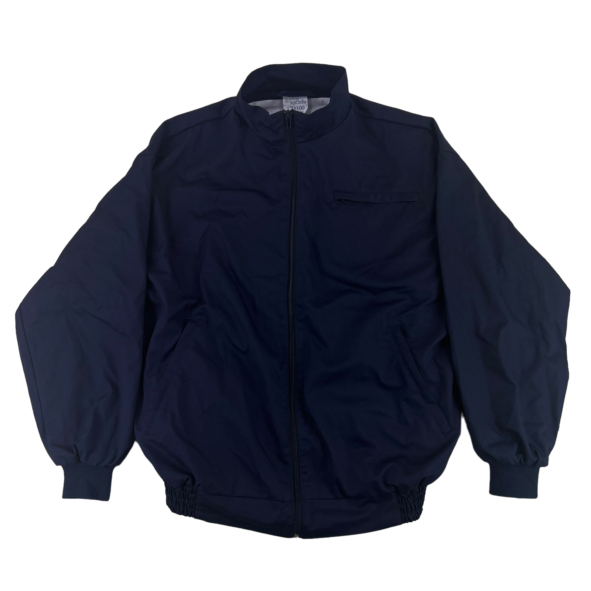 The jackets offer a fair bit of utility with 3 pockets in total, all of which can be zipped if desired. The front is closed by a zipper that carries on right up to the neck for a bit more insulation on windy days. They're a solid dark navy blue and are made of a very comfortable polyester & cotton blend. Great for running or just nipping to the shops.