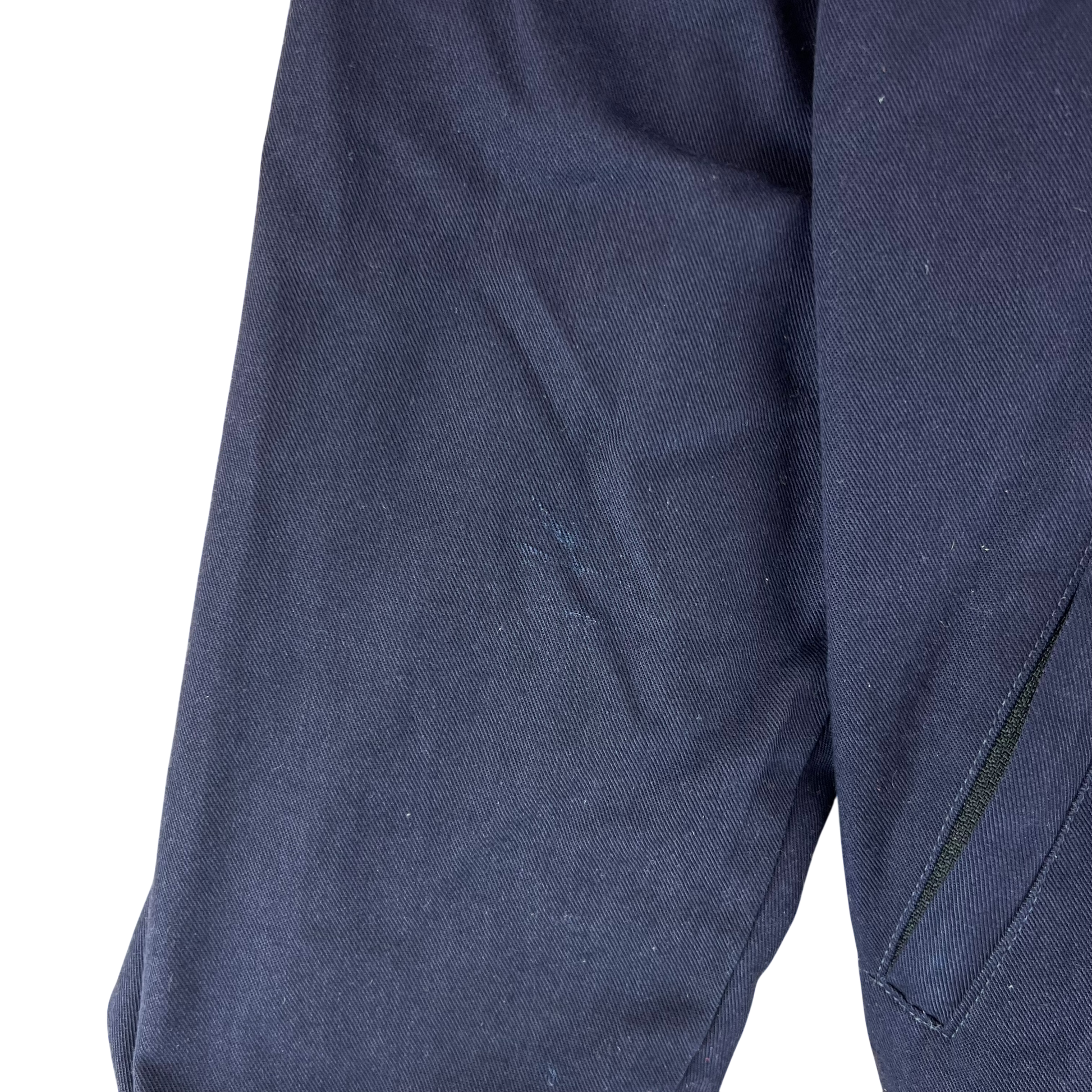 The jackets offer a fair bit of utility with 3 pockets in total, all of which can be zipped if desired. The front is closed by a zipper that carries on right up to the neck for a bit more insulation on windy days. They're a solid dark navy blue and are made of a very comfortable polyester & cotton blend. Great for running or just nipping to the shops.