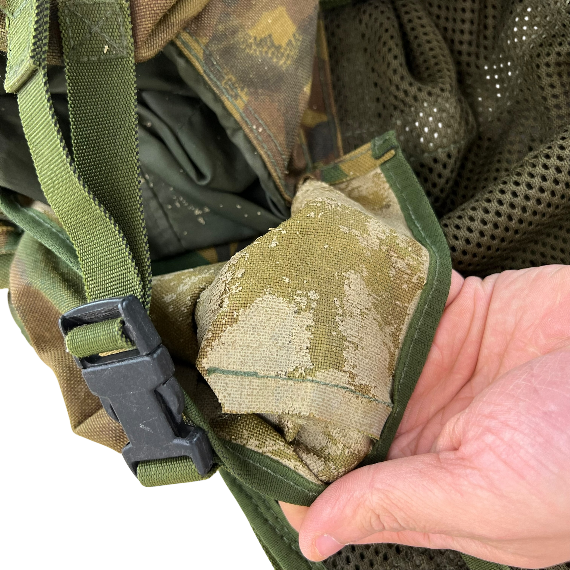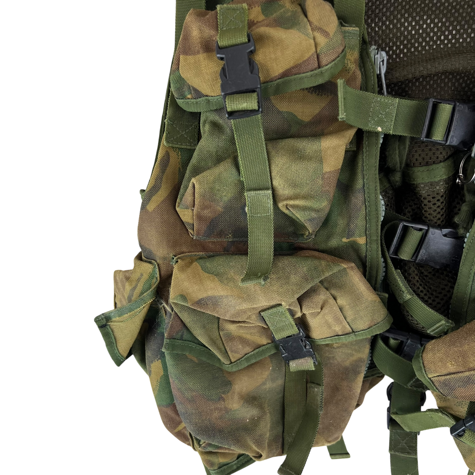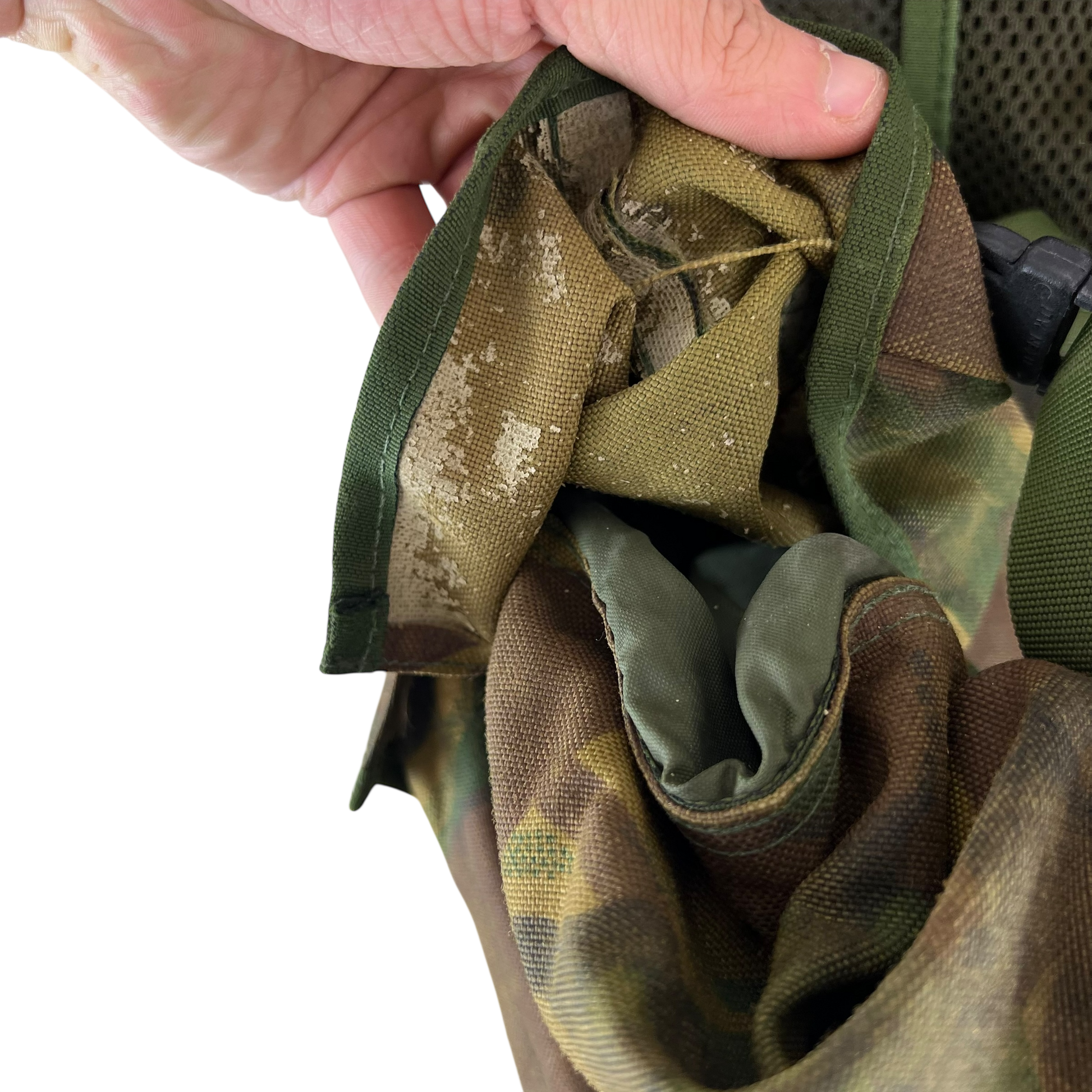 - Grade 2 / Original Condition - Great kit that's got a fair bit of wear on the waterproof membrane inside the majority of its pockets. Doesn't appear to be any large holes or issues on the body but inside most pouches the membrane is worn and will need removing or replacing due to the current one flaking. Can still be used as is. Material has a fair bit of fading too. Price reflects this.