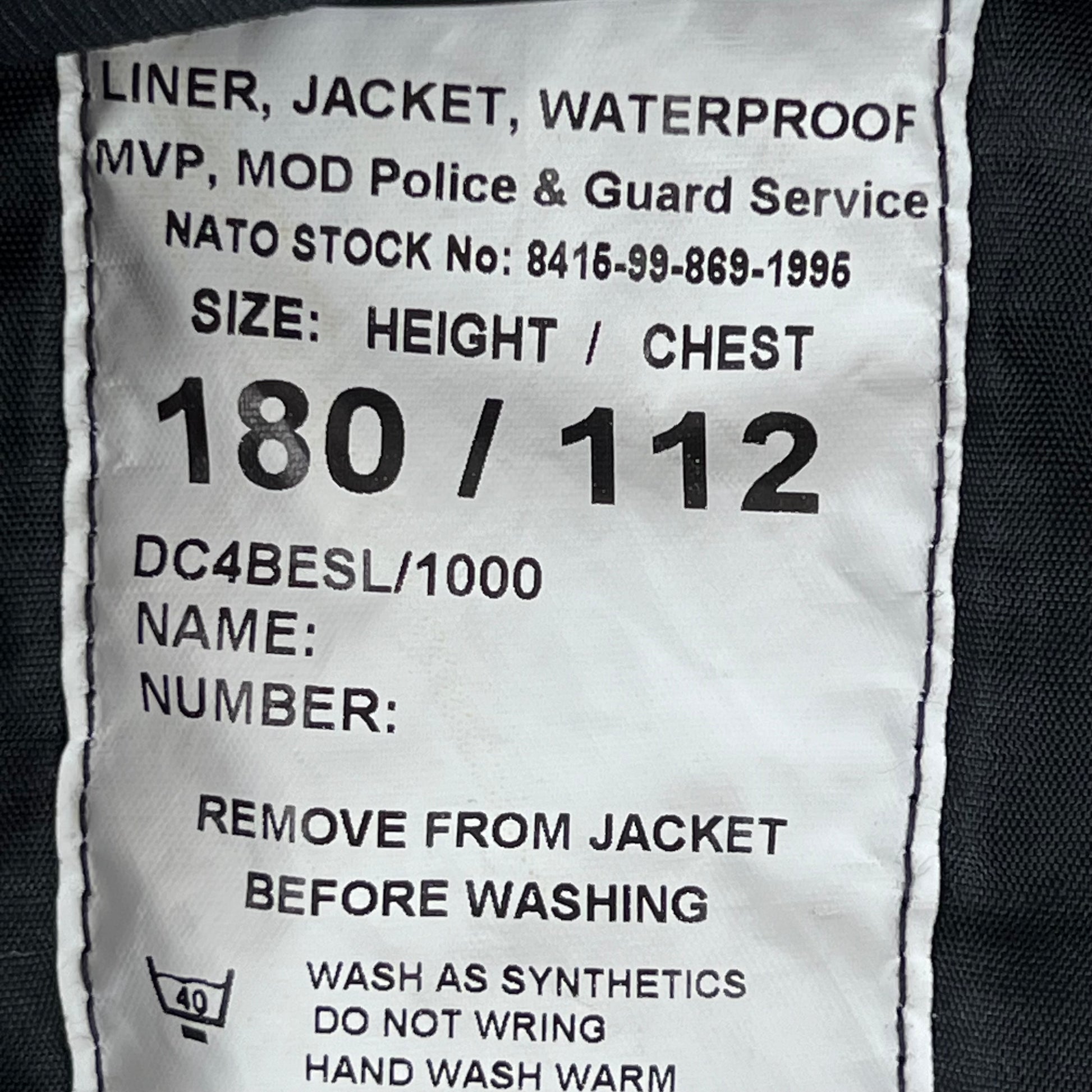 British Police / MoD Guard's Jacket Liner - Large 180/112