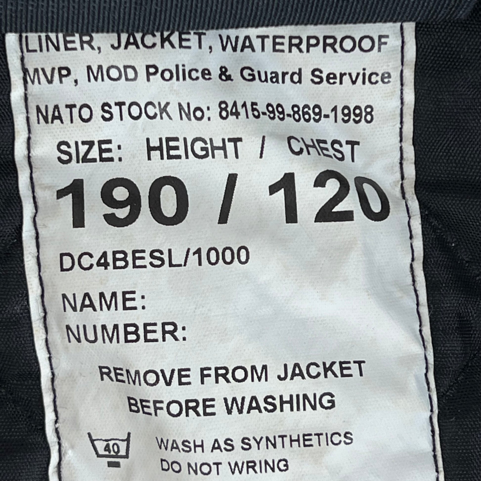 British Police / MoD Guard's Jacket Liner - X Large 190/120
