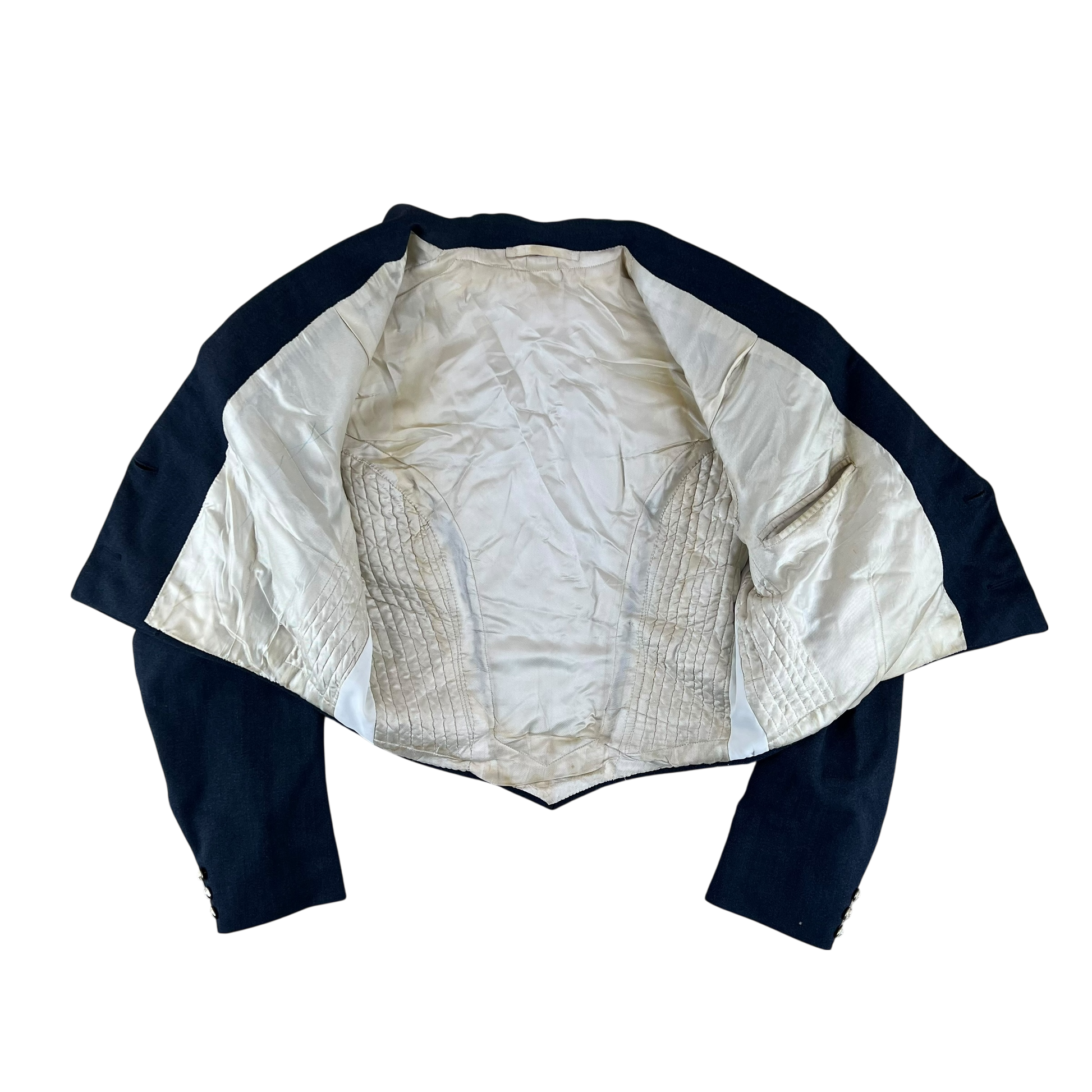 - Grade 2 / Original Condition - Decent body shape but there's a small hole on the one sleeve. Some grubby areas on the back as well. Please see photos for all details. Does have signs of its age but price reflects this and would work fine for a costume, theatre etc..