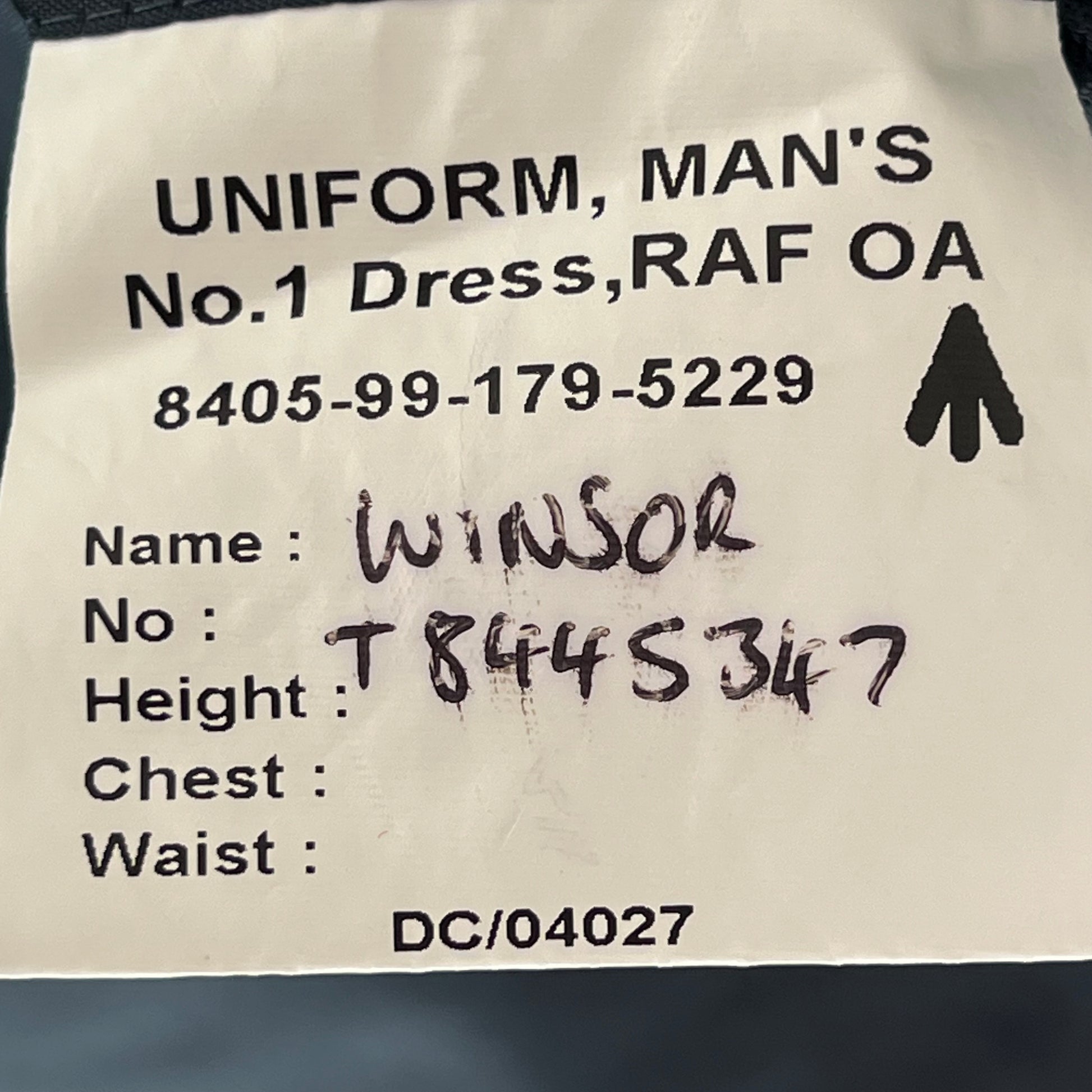 - "UNIFORM, MAN'S, No. 1 DRESS, RAF OA"