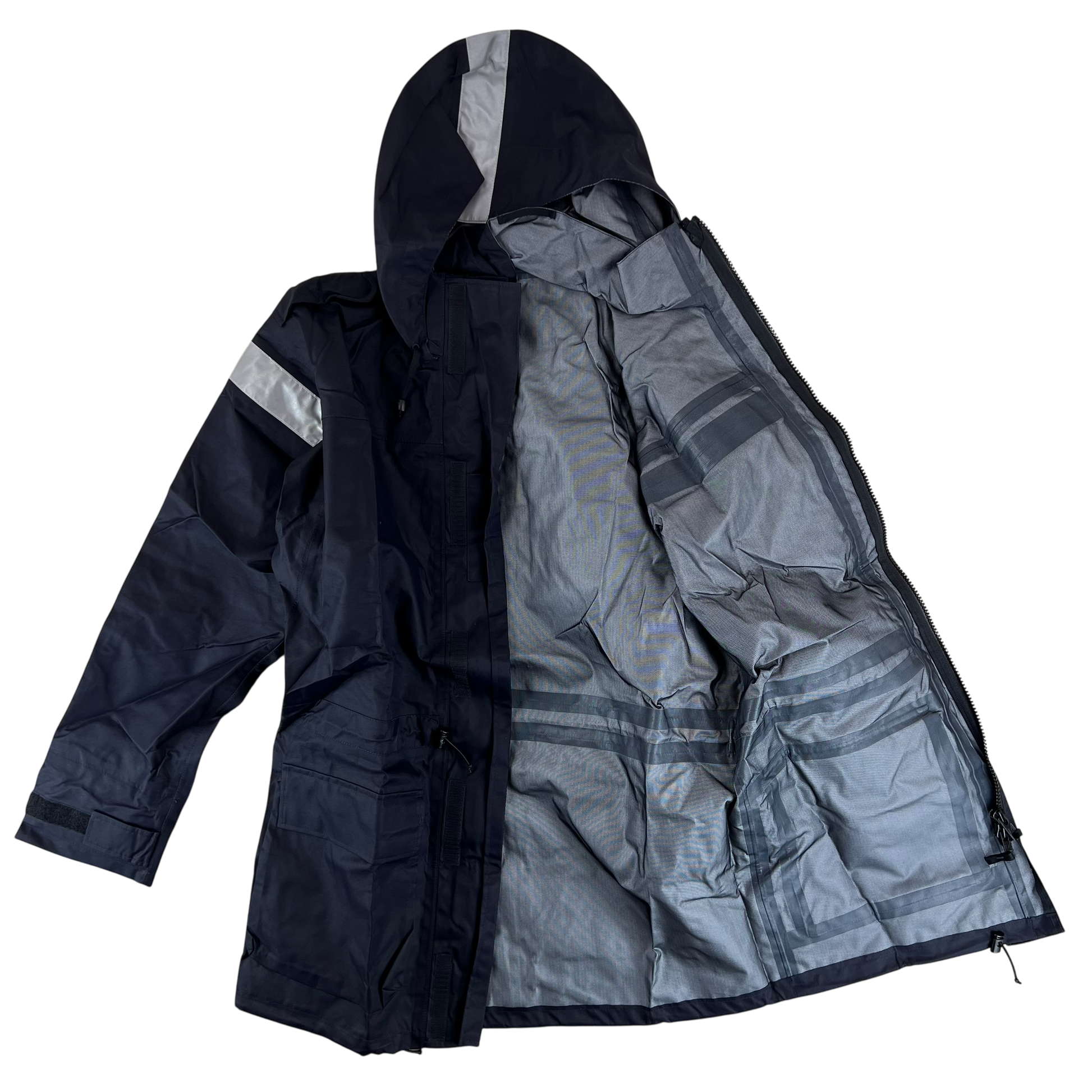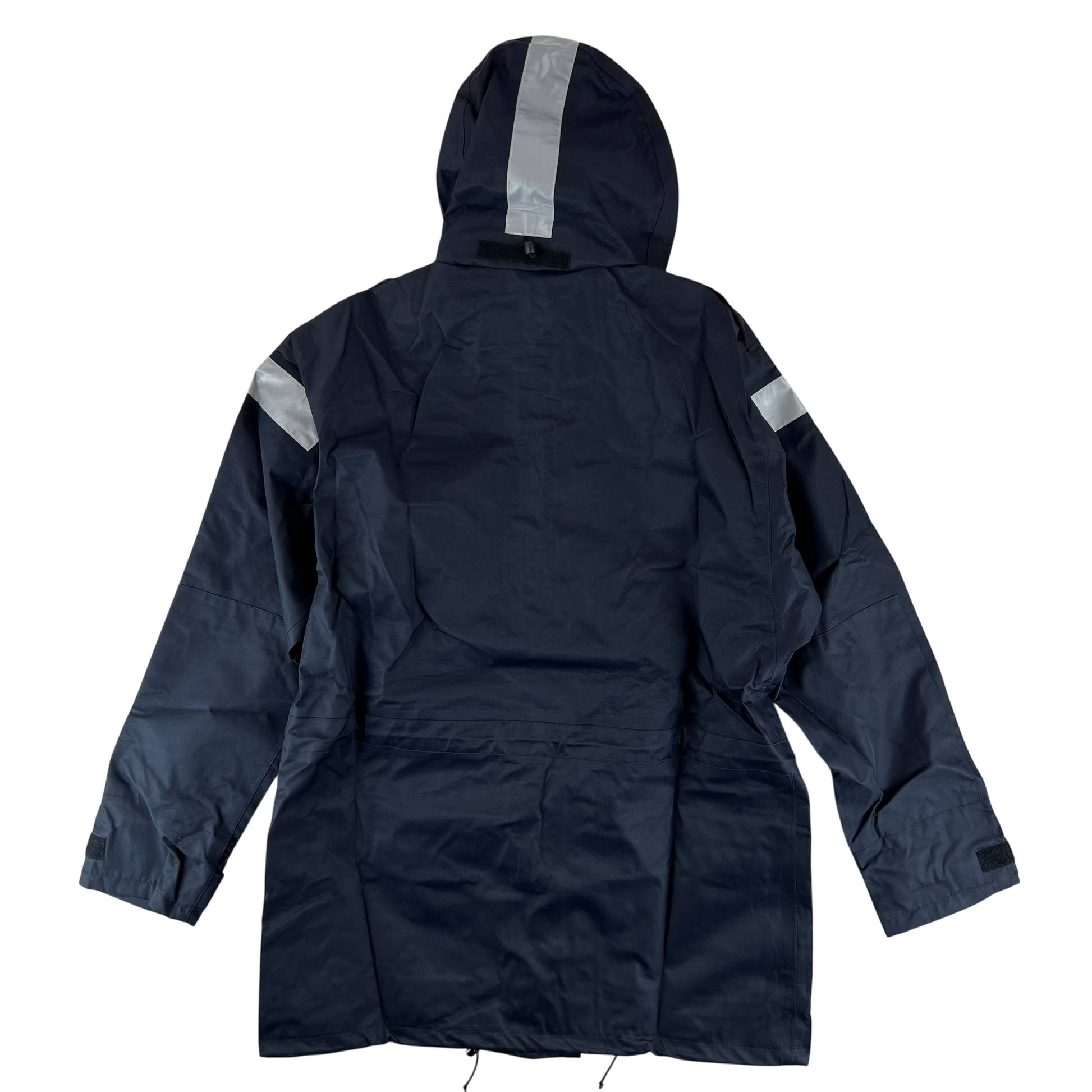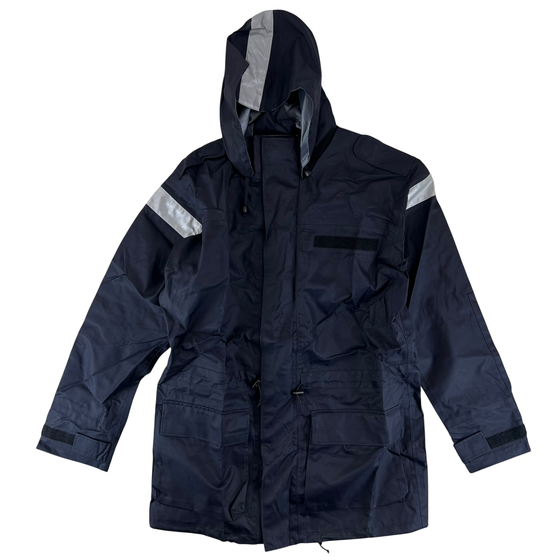 Modern, hardwearing wet weather gear from a country that certainly knows all too well just how miserable the rain can be without some proper kit. Worn by members of the British Royal Navy, these handy smocks come with 2 large pockets for storage and plenty of weatherproofing. The whole jacket is made of an MVP material and is waterproof and quite wind resistant too. You'll find the secreted hood useful in particularly harsh weather, along with the velcro adjustable sleeve cuffs and drawstring waist and hem, offering the option for plenty of insulation against the elements. It comes in a very dark navy colour with the exception of a few hi-vis strips on the shoulders and hood, giving you military quality without being overtly surplus.