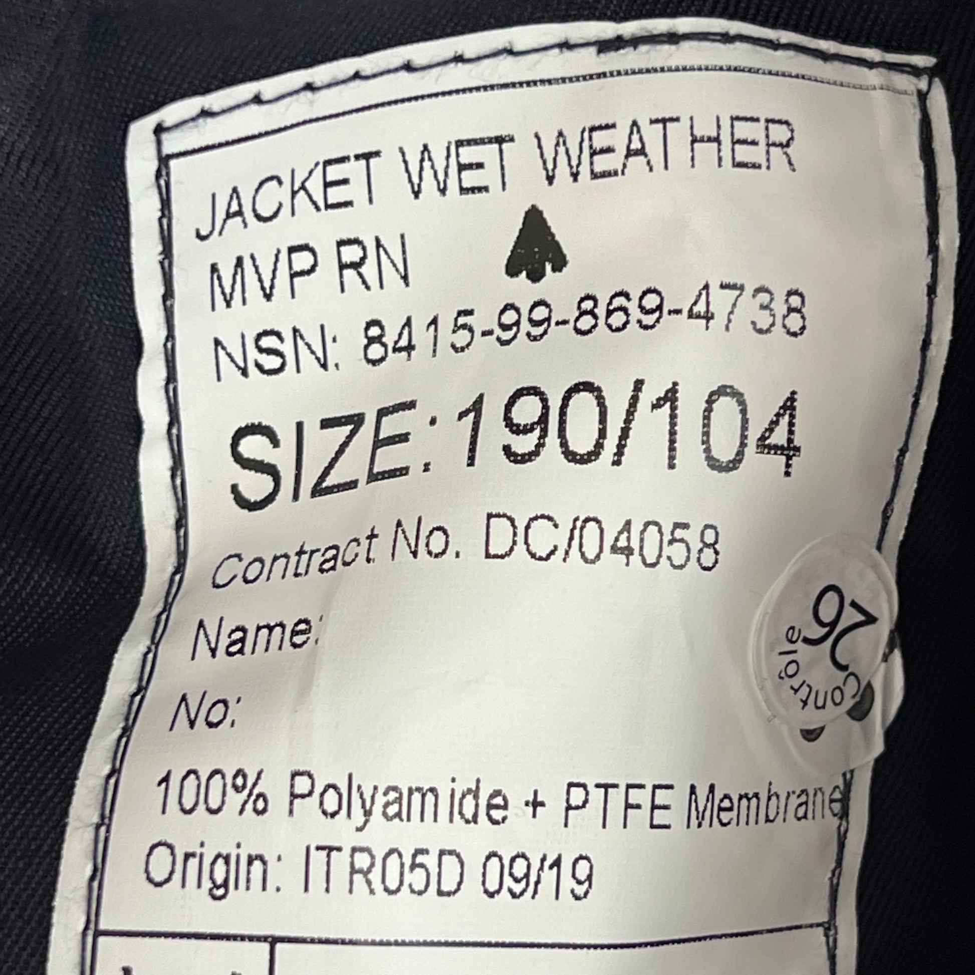 British Royal Navy Foul Weather MVP Smock - Large 190/104