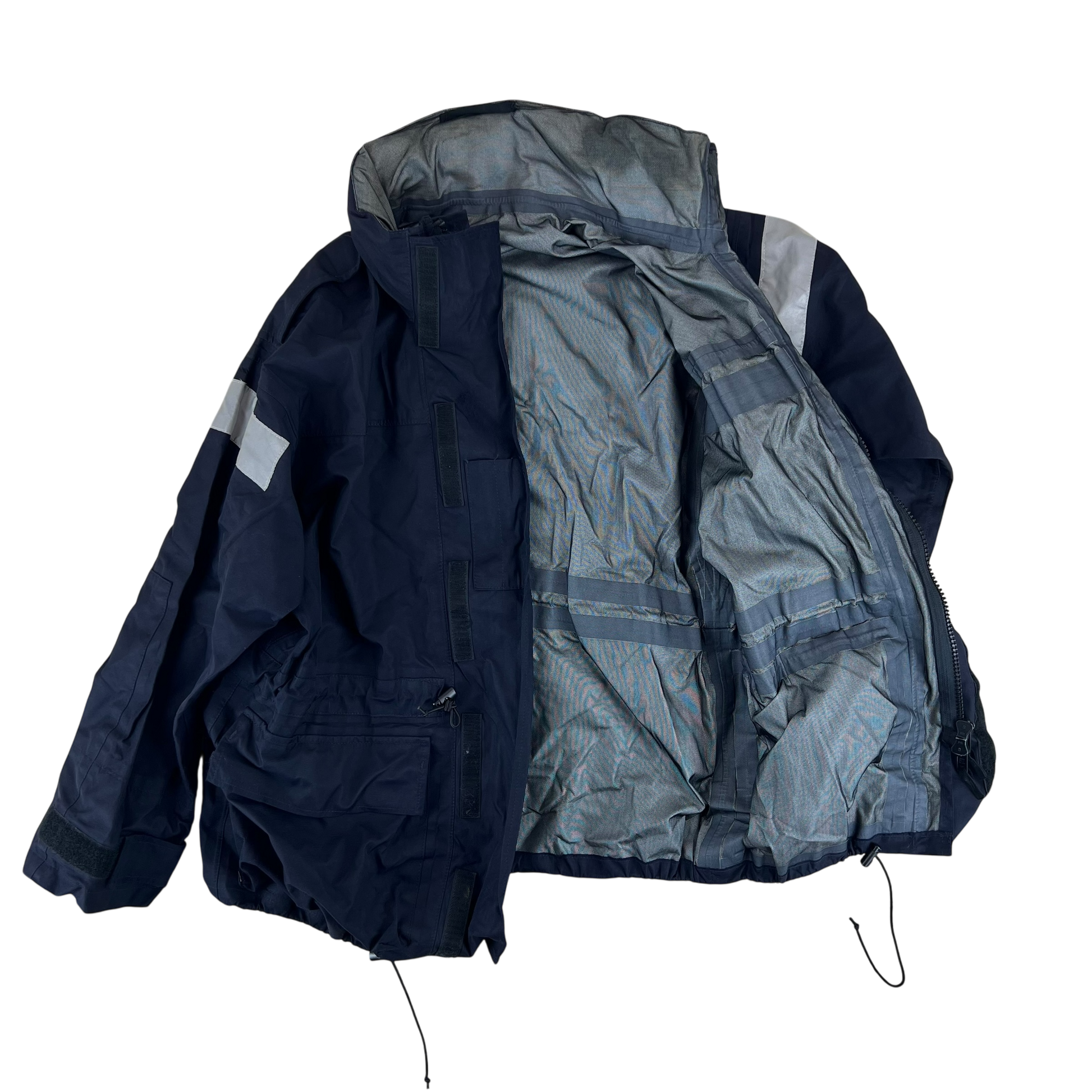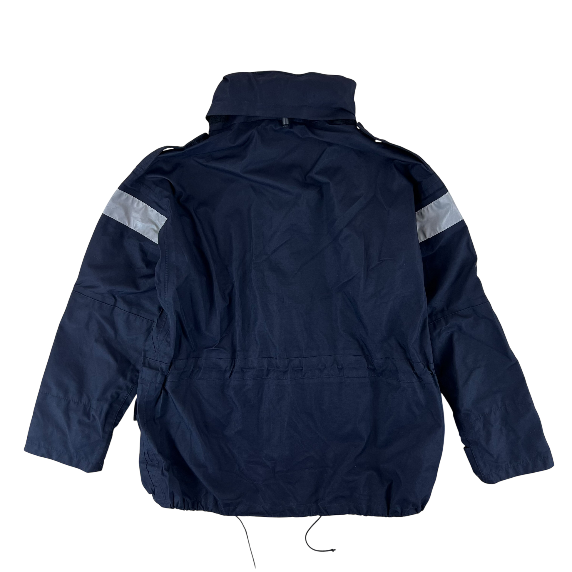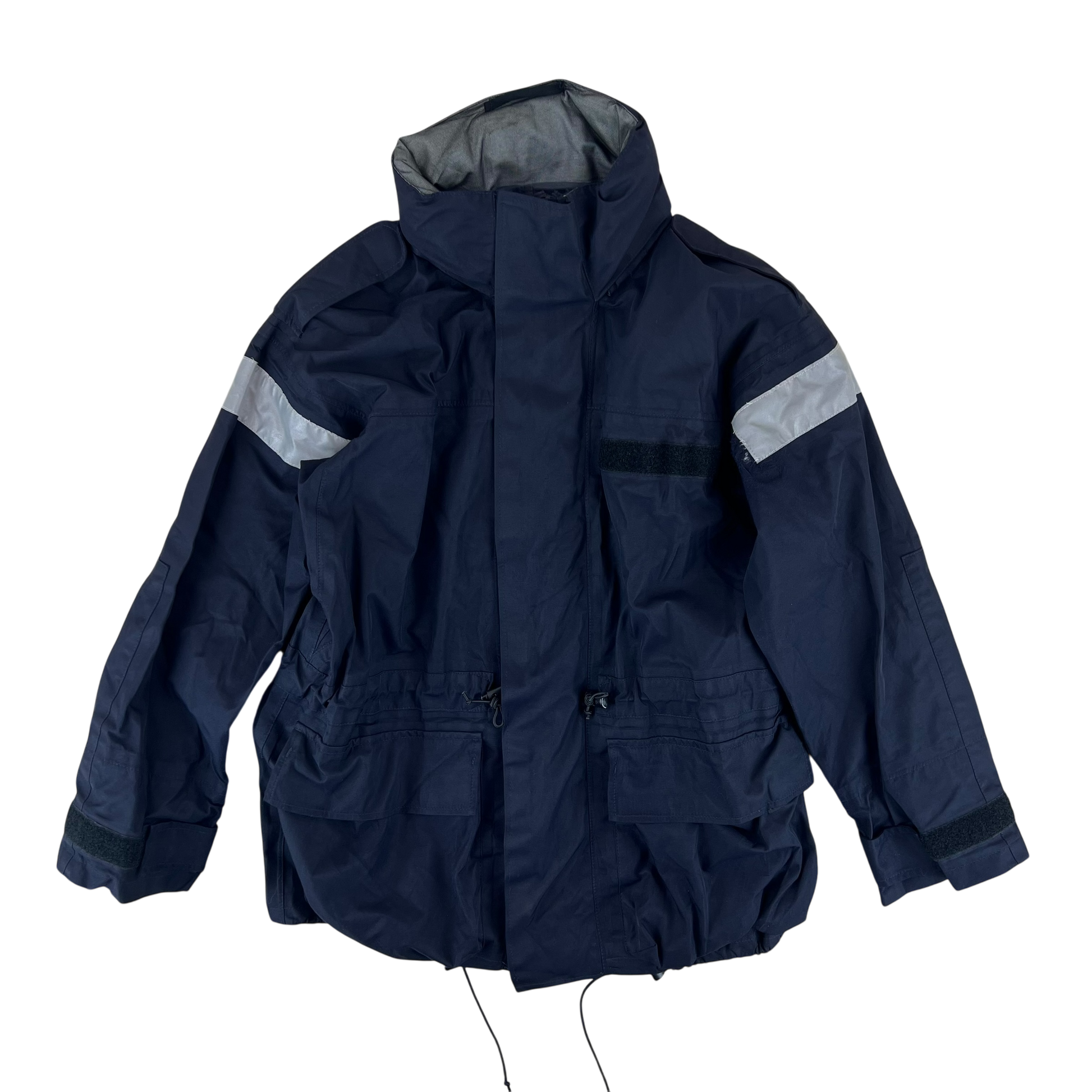 Modern, hardwearing wet weather gear from a country that certainly knows all too well just how miserable the rain can be without some proper kit. Worn by members of the British Royal Navy, these handy smocks come with 2 large pockets for storage and plenty of weatherproofing. The whole jacket is made of an MVP material and is waterproof and quite wind resistant too. You'll find the secreted hood useful in particularly harsh weather, along with the velcro adjustable sleeve cuffs and drawstring waist and hem, offering the option for plenty of insulation against the elements. It comes in a very dark navy colour with the exception of a few hi-vis strips on the shoulders and hood, giving you military quality without being overtly surplus.