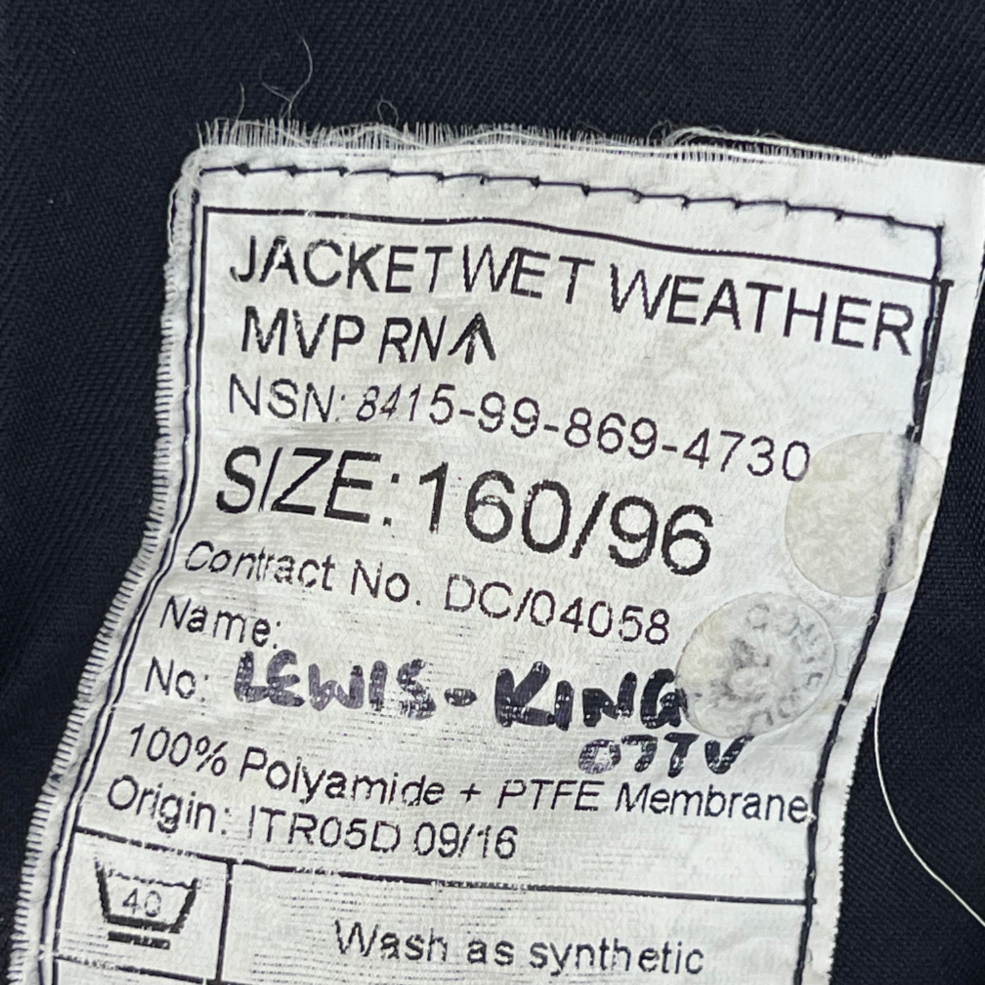 British Royal Navy Foul Weather MVP Smock - Medium 160/96