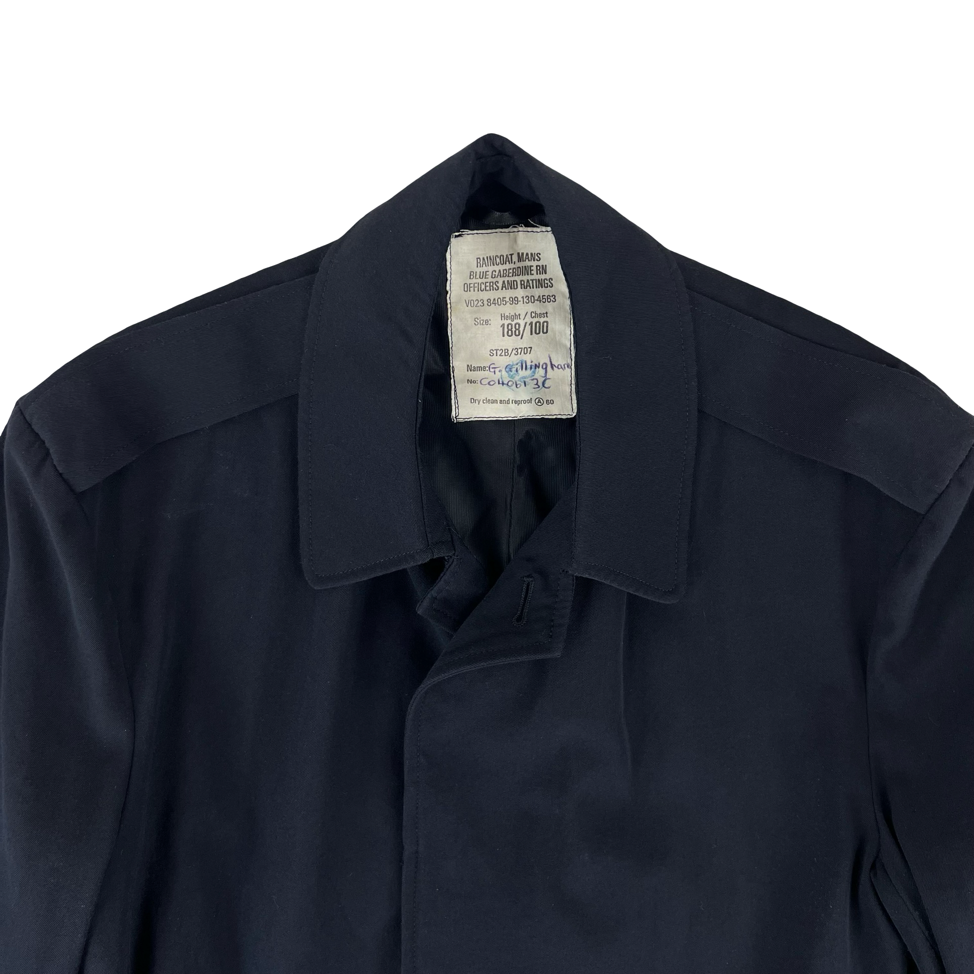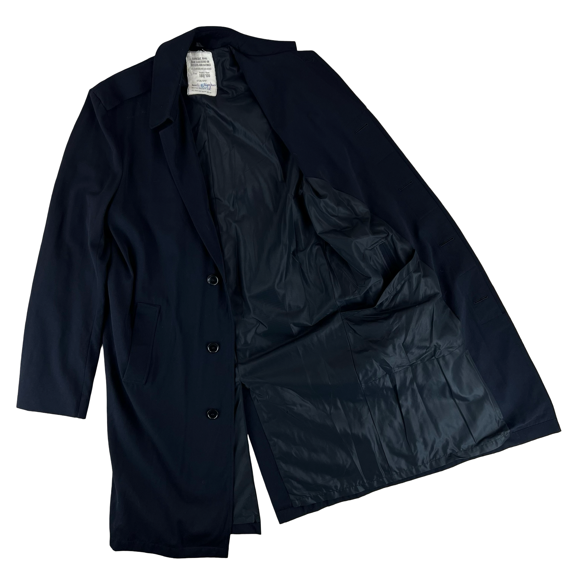 - "RAINCOAT, MANS, BLUE GABERDINE RN OFFICERS AND RATINGS"