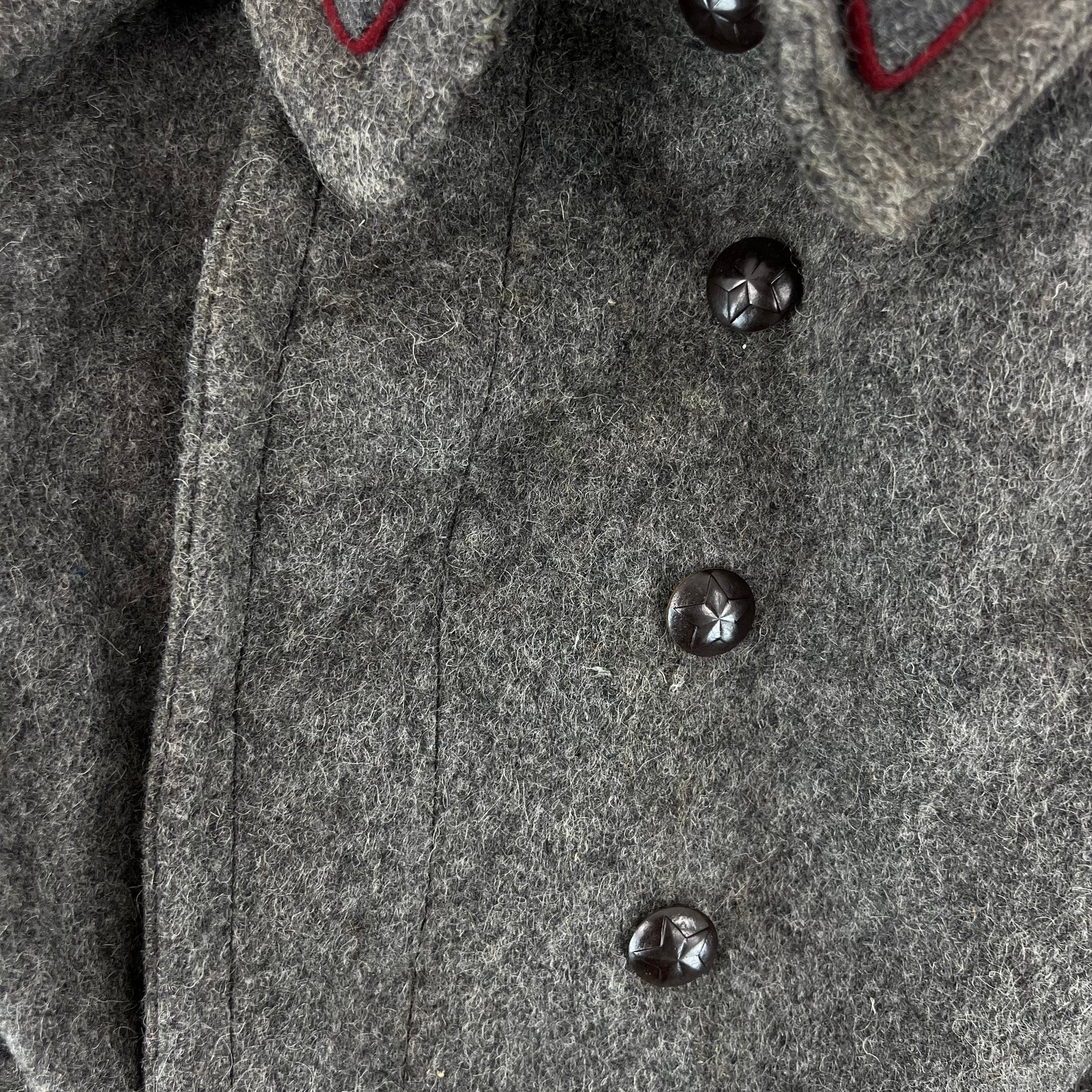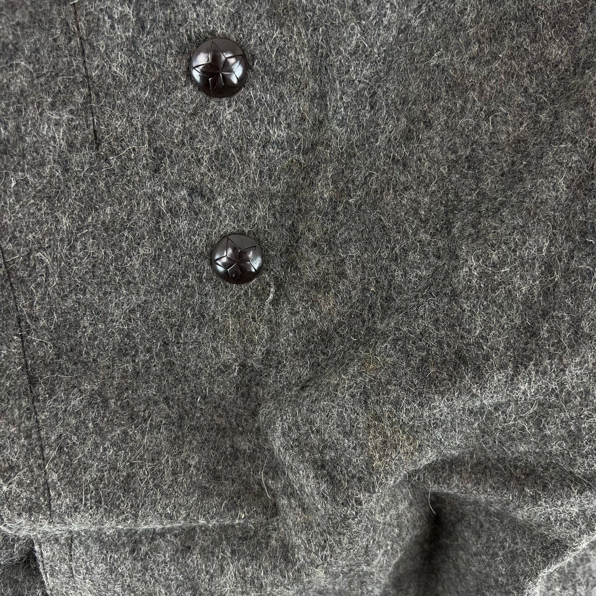 A beautiful woollen piece from a bygone era of Bulgaria. Issued for decades with the original inspiration relying heavily on the early Soviet models, the coat saw some tweaks over the nearly 50 that the communist government lasted, although they always stayed true to the Russian origin. The coat is made of an all wool material, giving great windproofing and water resistance. It features some lovely engraved buttons too, featuring a red star.
