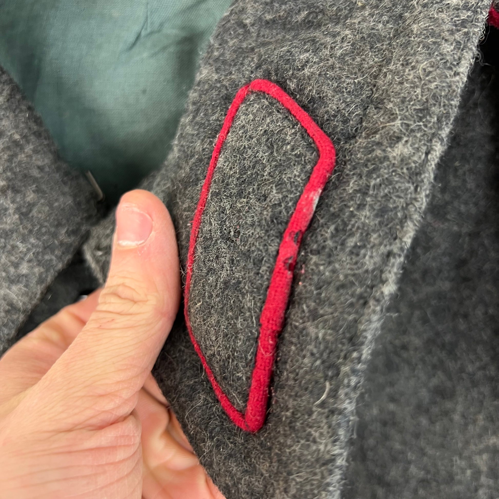 - Grade 2 / Original Condition - In decent shape but there's a few moth holes on the red piping and on the wool body as shown. Slight marking from storage too. Price reduced given the piece needs some care
