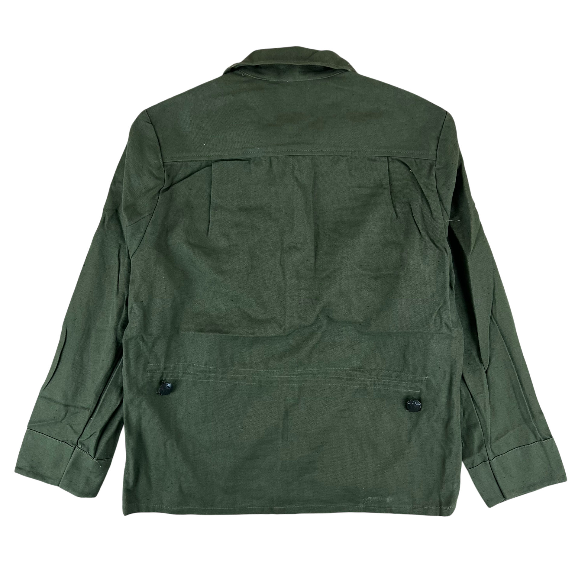 These shirts have some lovely little features for being a standard issue shirt. There's many quaint touches, from the embossed buttons with a great big star to the internal drawstring for a tailored fit. You'll also find belt hooks to the side, just to keep everything in place. And being truly Slavic in design the shirt is to be worn as a pullover tunic rather than a button up shirt. All in all it is rather apparent Soviet era kit.