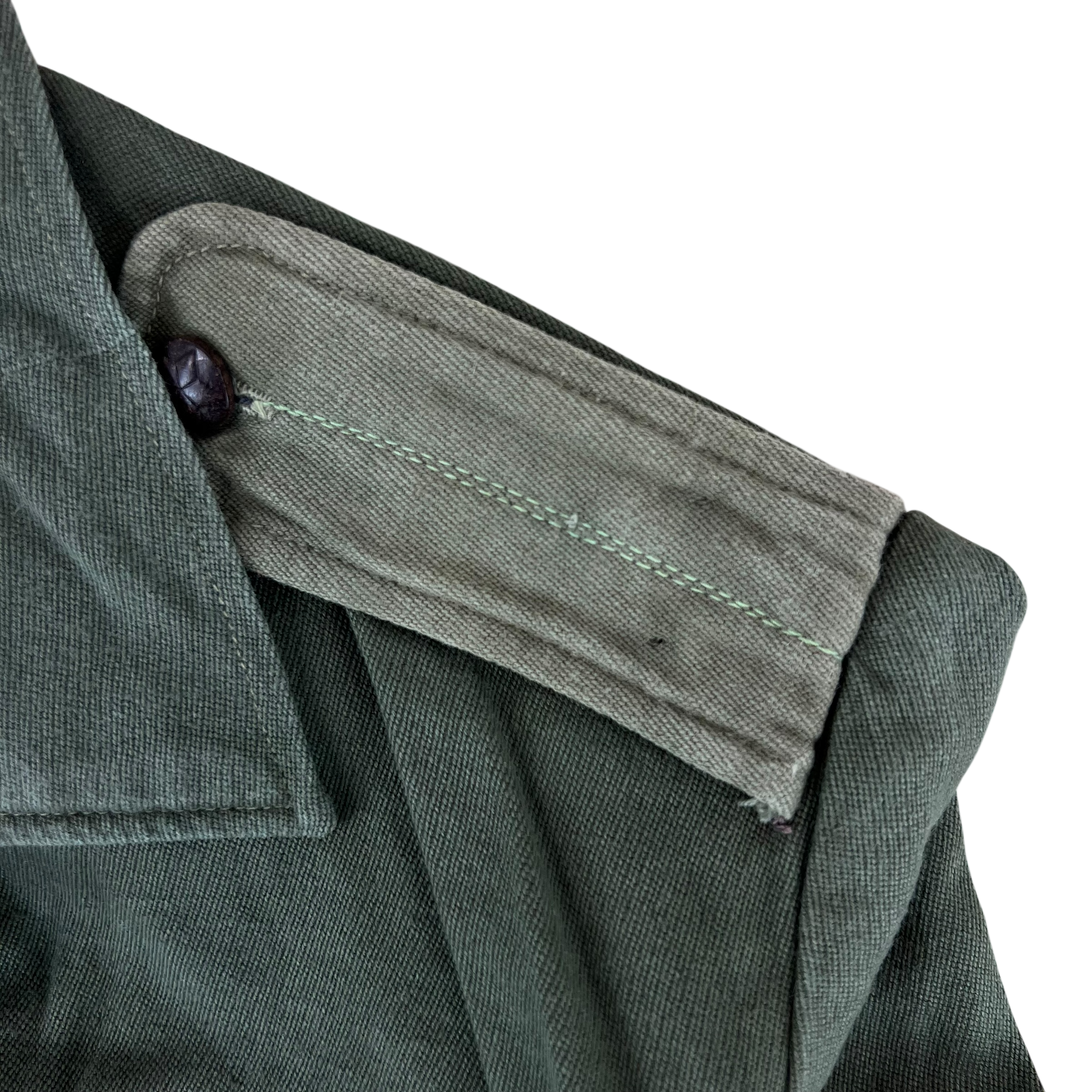 - Grade 1 - Good shape given its fantastic age. General signs of prior use such as a few markings, missing belt loops & drawstring and seemingly replaced shoulder epaulettes giving slightly contrasting colours. Great character and a subtly distressed look. Up for much more!