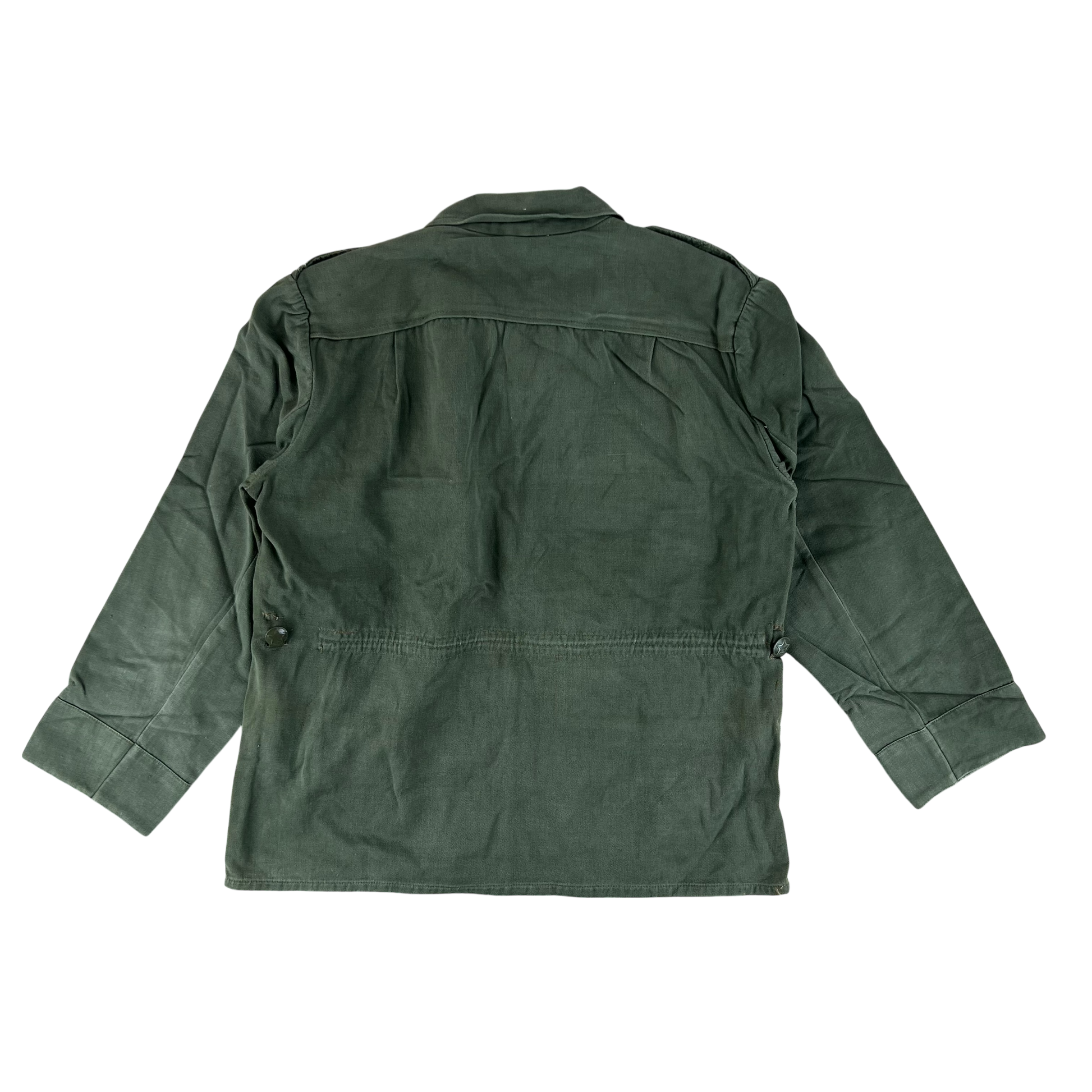 These shirts have some lovely little features for being a standard issue shirt. There's many quaint touches, from the embossed buttons with a great big star to the internal drawstring for a tailored fit. You'll also find belt hooks to the side, just to keep everything in place. And being truly Slavic in design the shirt is to be worn as a pullover tunic rather than a button up shirt. All in all it is rather apparent Soviet era kit.