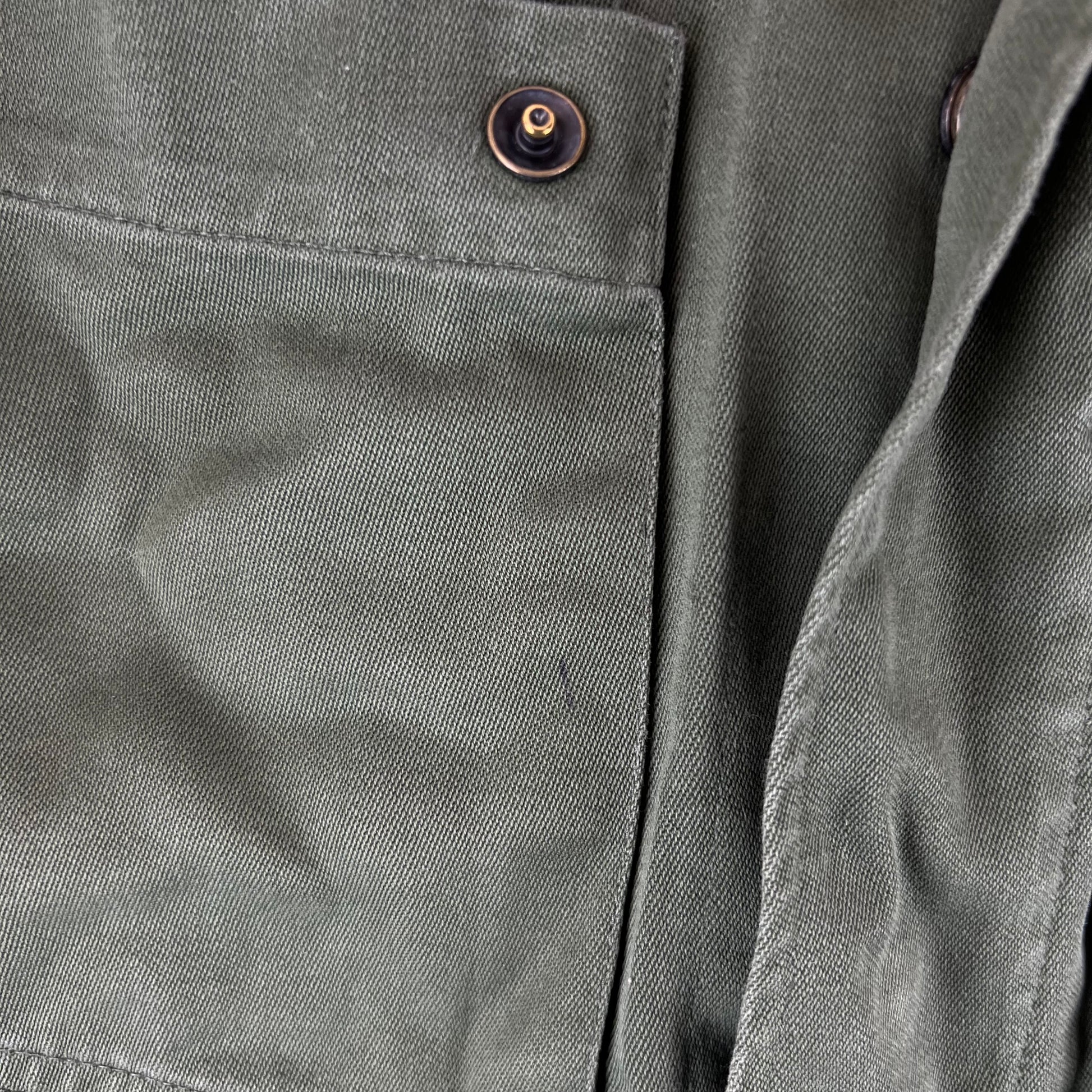 - Grade 2 / Original Condition - In decent shape but has a few flaws. Some scuffing on the backs of the sleeves as shown as well as one popper missing from the right chest pocket. Main closure still works well and isn't awfully distressed, but has a bit more wear. Price reflects this.