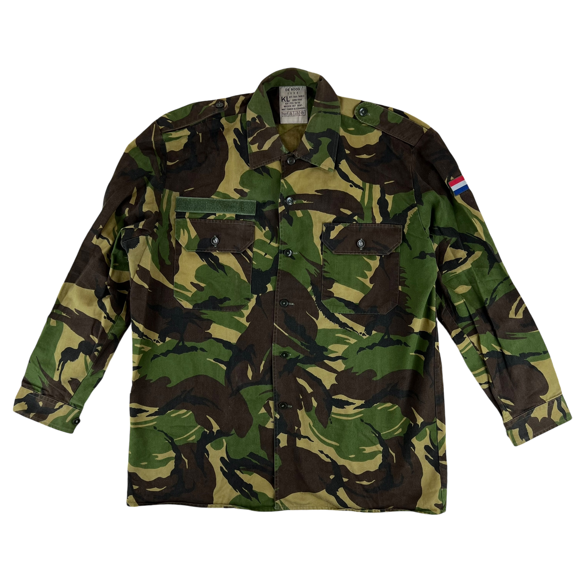 A fantastic staple of retro Dutch army surplus. These shirts were general issue from decades, starting in the 1990's until being phased out only a few years ago in 2022. Being standard issue these were designed for all temperate environments, meaning everything from combat use to general field exercises could be done in these shirts while blending in effortlessly.