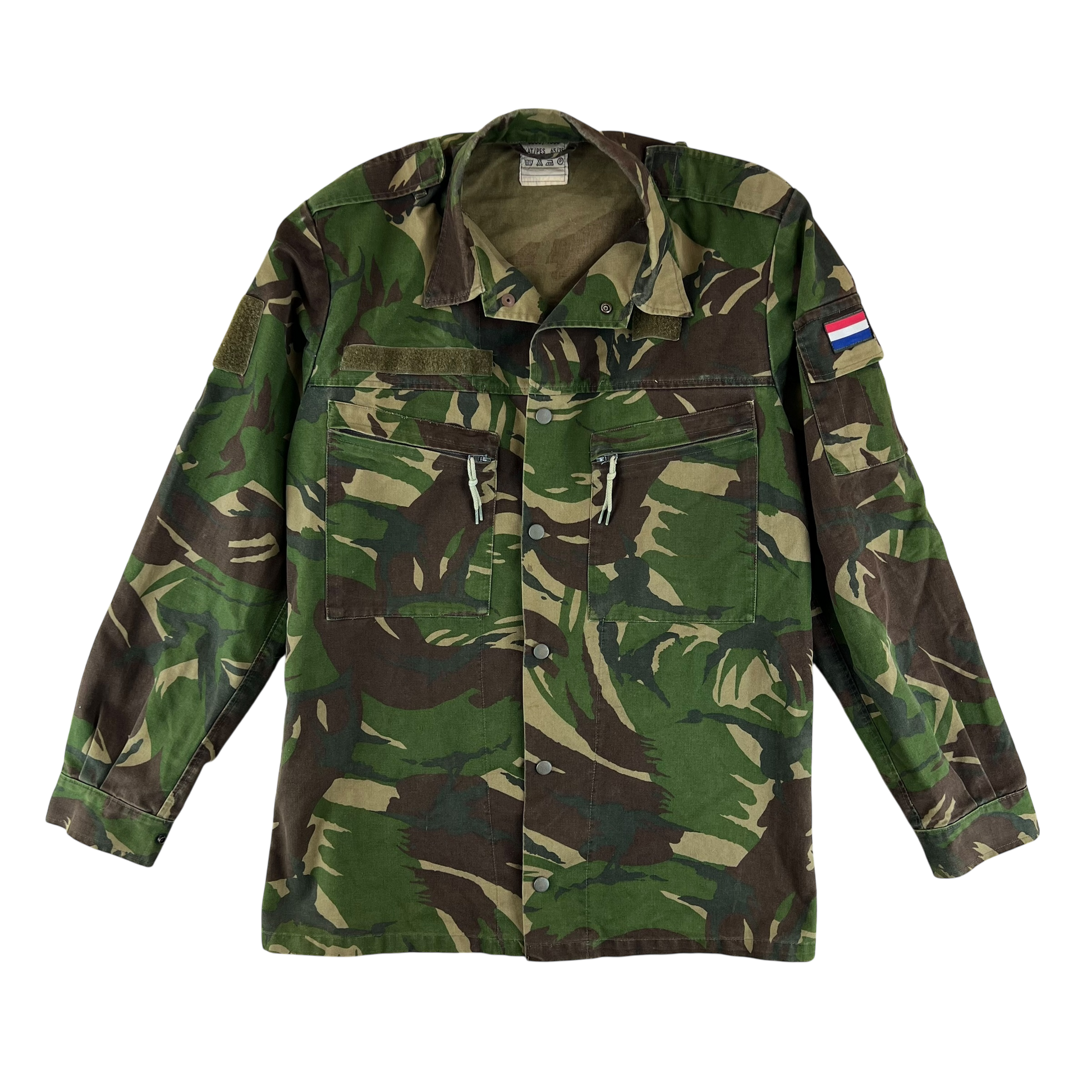 Fantastic modern kit from the Dutch Army. Issued as part of their first wave of camouflage uniforms, with what were then modern innovations such as popper studs and zipper pockets, this lightweight jacket provides a great extra layer for storage and concealment. The camouflage pattern is the Dutch copy of the British DPM Woodland design, an iconic pattern which has seen use in over 40 countries. The jacket is made of a comfortable cotton & polyester blend and includes 4 pockets, offering plenty of storage for a lightweight jacket.