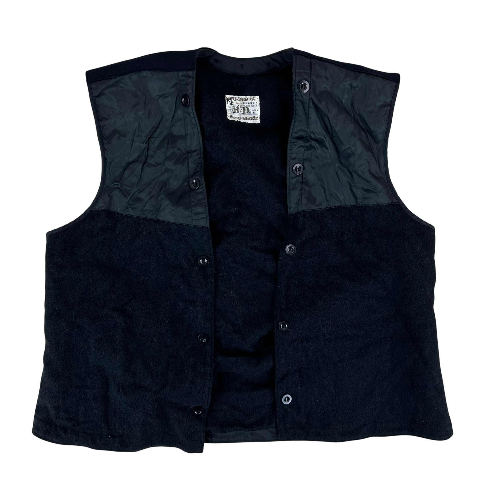 A nice and simple wool vest issued through the Dutch Forces in the midst of the Cold War. Worn below the usual NATO olive green jackets and parkas, this body warmer helped soldiers to have that little extra player of comfort without being too weighed down. The vest comes with numerous buttons to fit into the corresponding Dutch jacket, but works nicely by itself too!