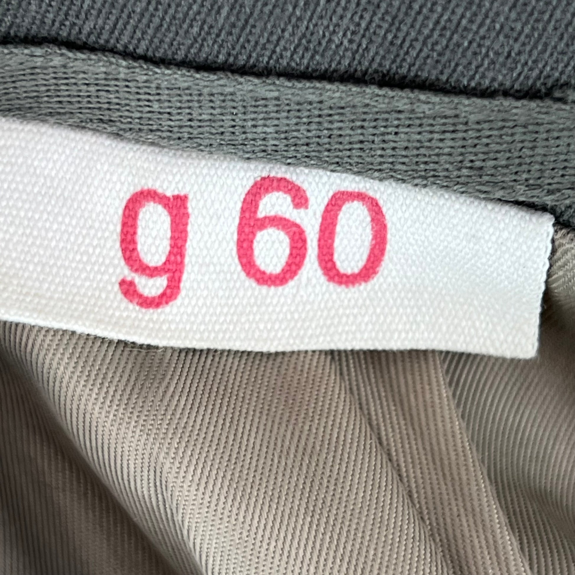 - Chest Size: 49" | Suggested Size: X Large Slim - Label reads "g 60"