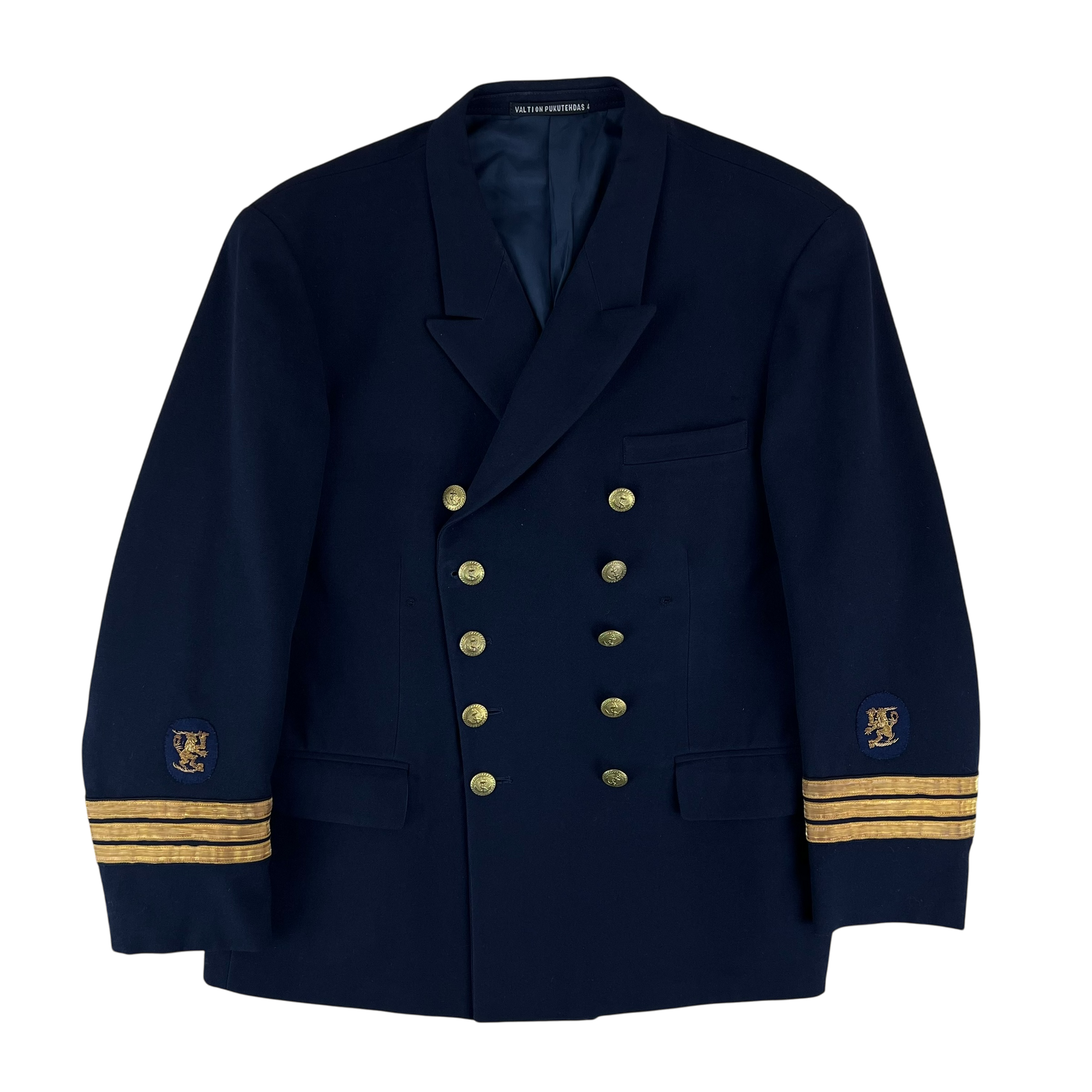 A wonderfully elegant piece of Finnish naval attire, with engraved golden buttons and gilt thread cuffs, its hard to find a more stunning modern jacket. A blazer like this one would've been worn by officers throughout the navy, usually for prestigious occasions, parades, evening dinners and the like. It is made of a quality all wool material in barathea weave and includes 3 pockets, plenty for a dress jacket. You'll find the jacket is made with care and attention to detail and is just a beautiful piece.