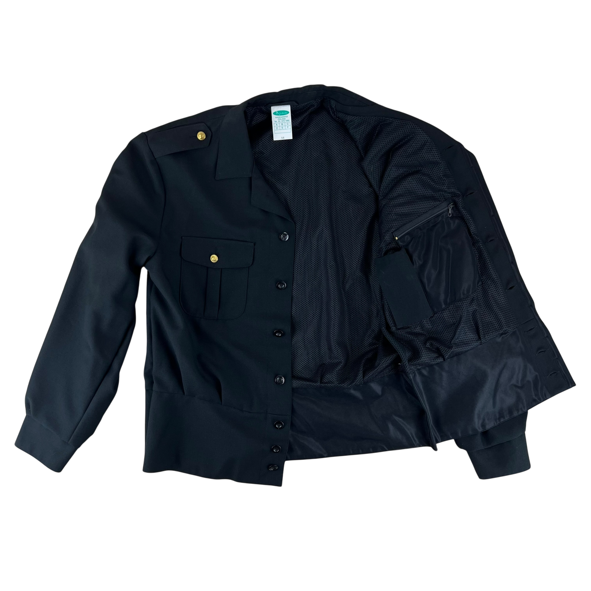 The jacket comes with wonderful engraved golden anchor buttons and a quaint Finnish flag patch on the sleeve. You'll find 2 flap pockets, internal pockets as well as a slit chest pocket offering ample storage for a dress piece!