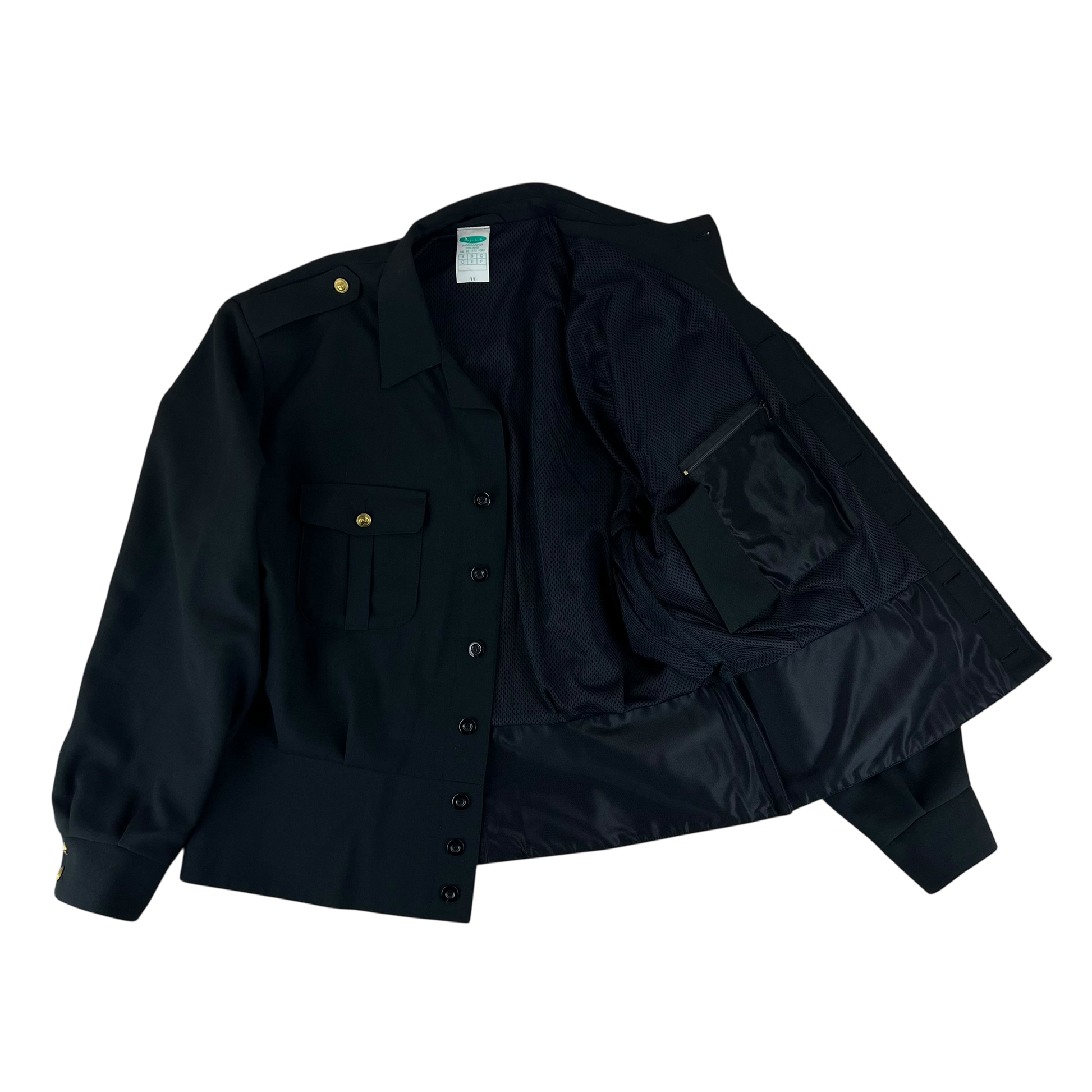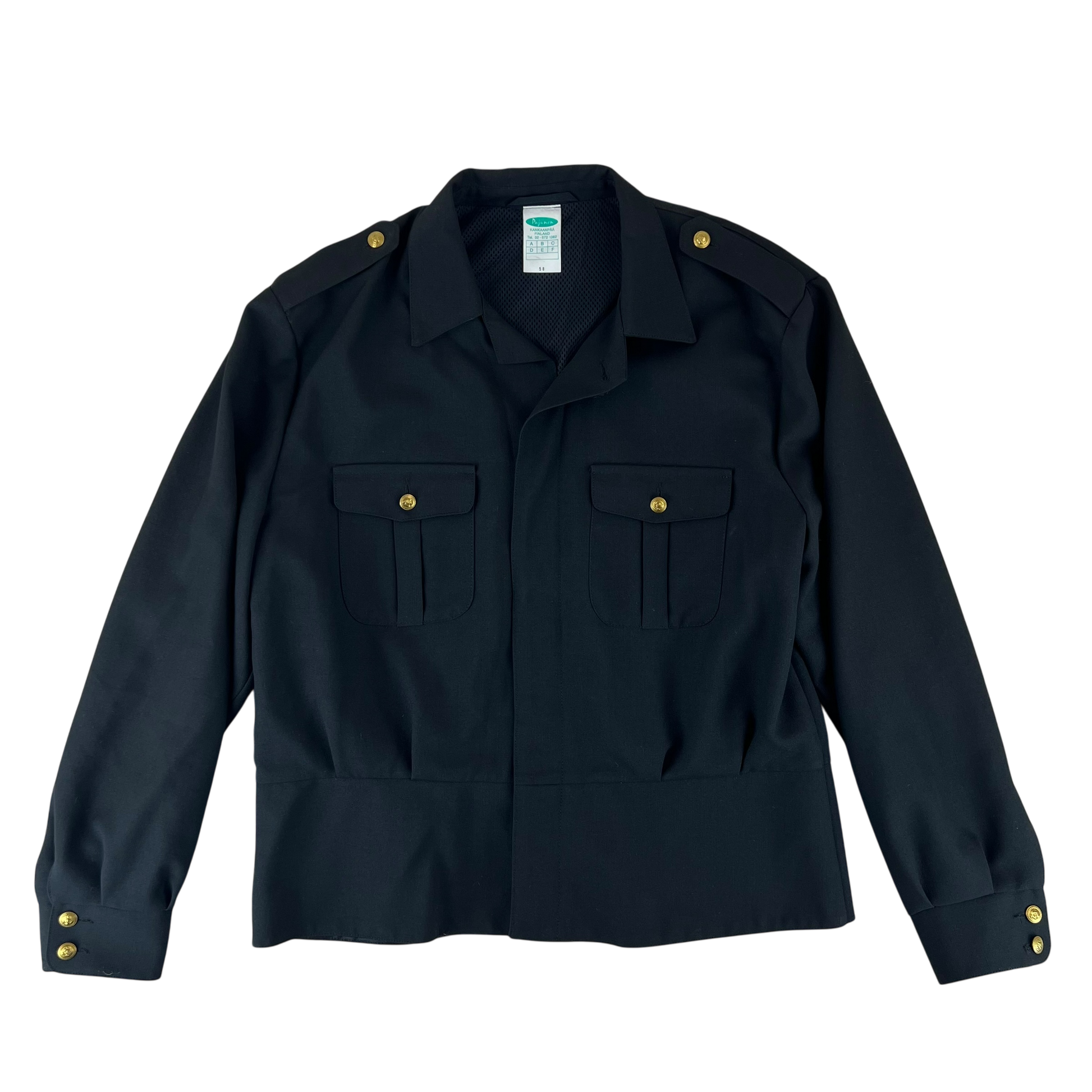 The jacket comes with wonderful engraved golden anchor buttons and a quaint Finnish flag patch on the sleeve. You'll find 2 flap pockets, internal pockets as well as a slit chest pocket offering ample storage for a dress piece!
