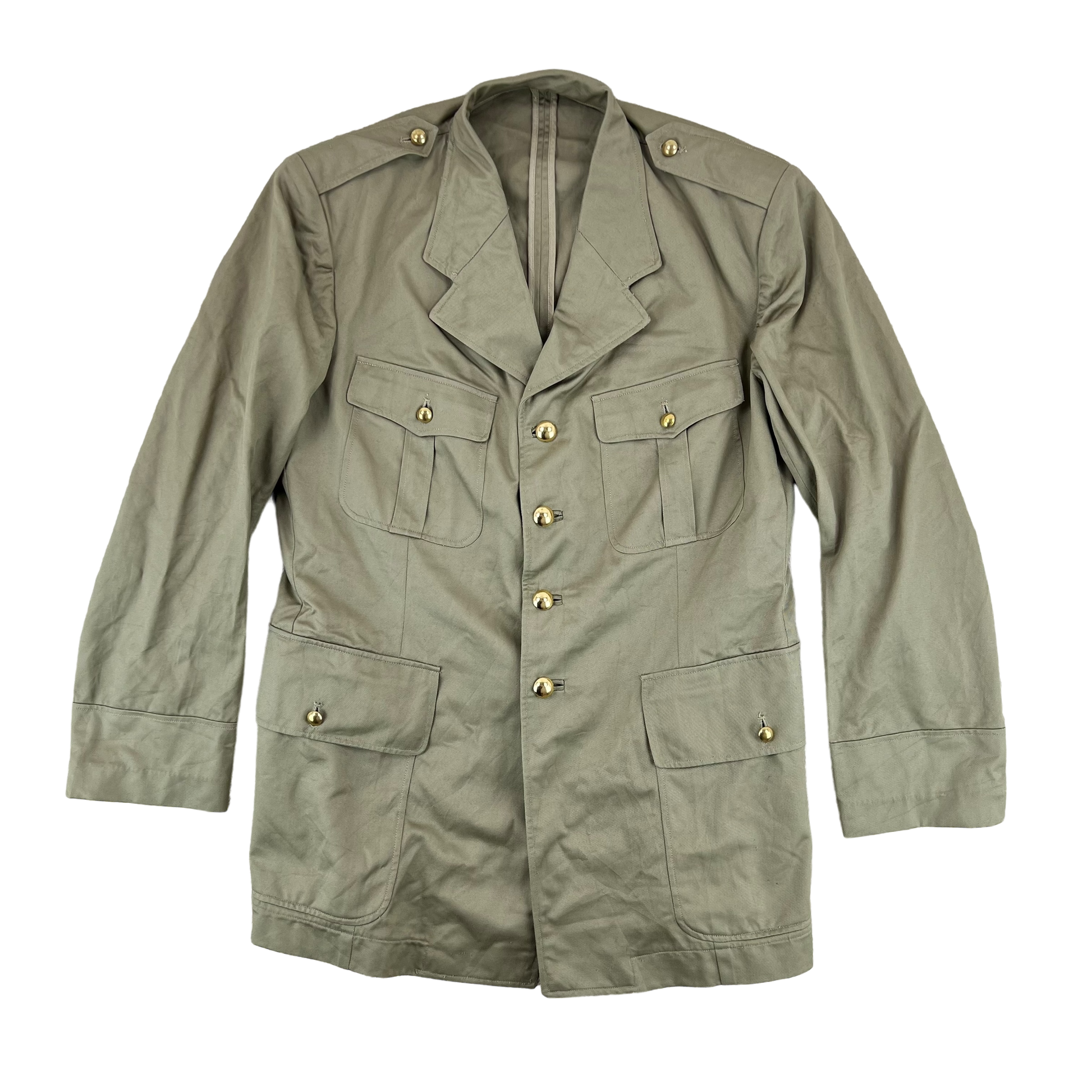 The jacket comes in a solid sandy beige colour, complimented by the shining golden buttons dotted across the jacket. It keeps in style with the timeless military safari jacket look, 2 chest pockets, 2 large waist pockets and shoulder epaulettes for sashes and rank pips. It is certainly more streamlined than some dress jackets seen across the world, but it is still a classic.