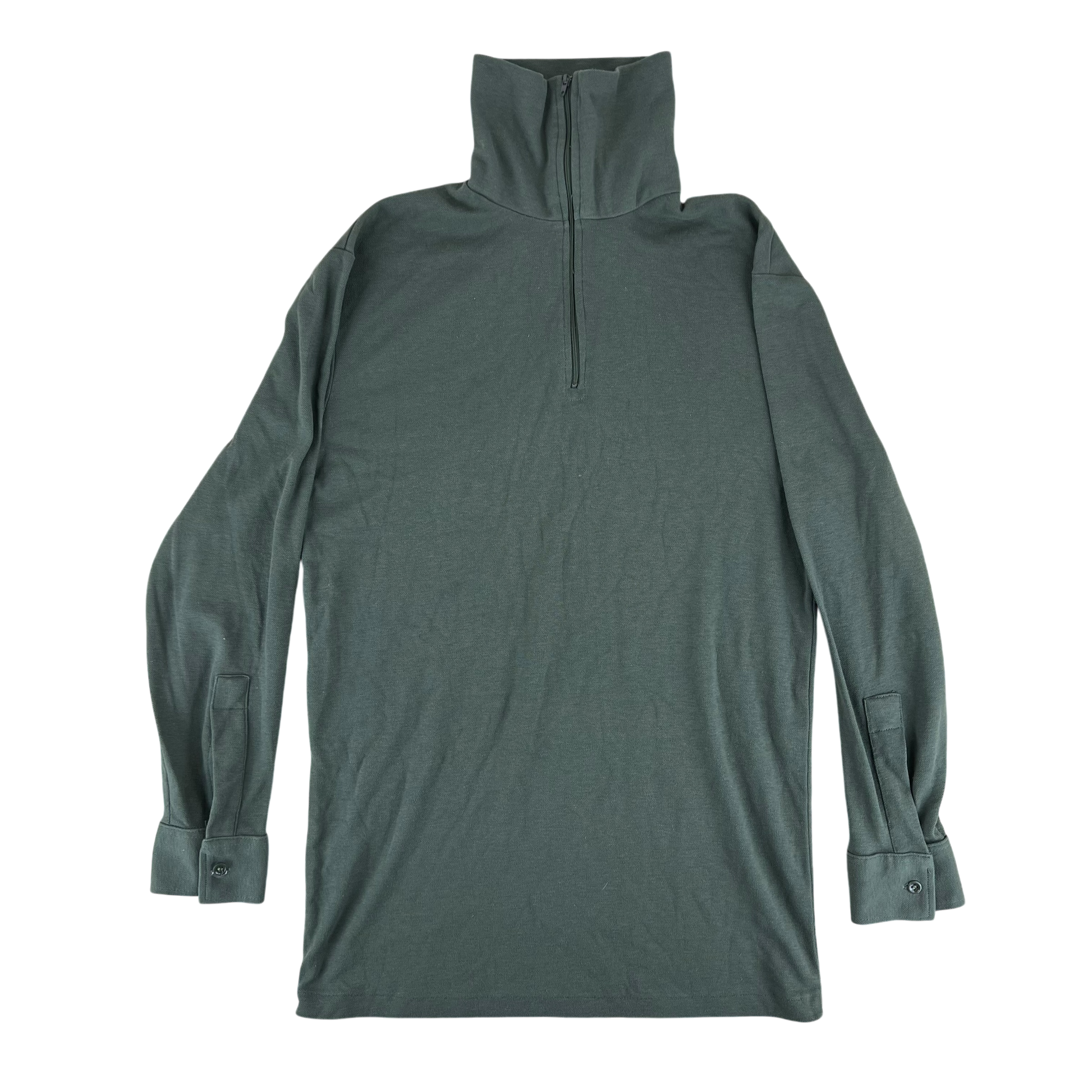 A great bit of winter kit from the French Army, Issued during the Cold War this base layer was standard issue winter underwear throughout the army. It was a great thermal piece being made of an all cotton material, featuring a 1/4 funnel neck collar and button closure cuffs. It comes in a solid sage grey colour making it a great neutral to blend with many wardrobes, indoors or outdoors.
