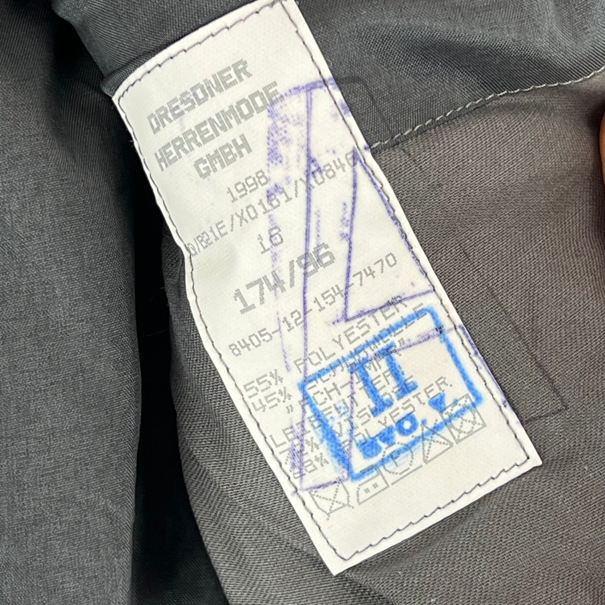 - Chest Size: 43" | Suggested Size: Medium Slim - Label states around 96cm