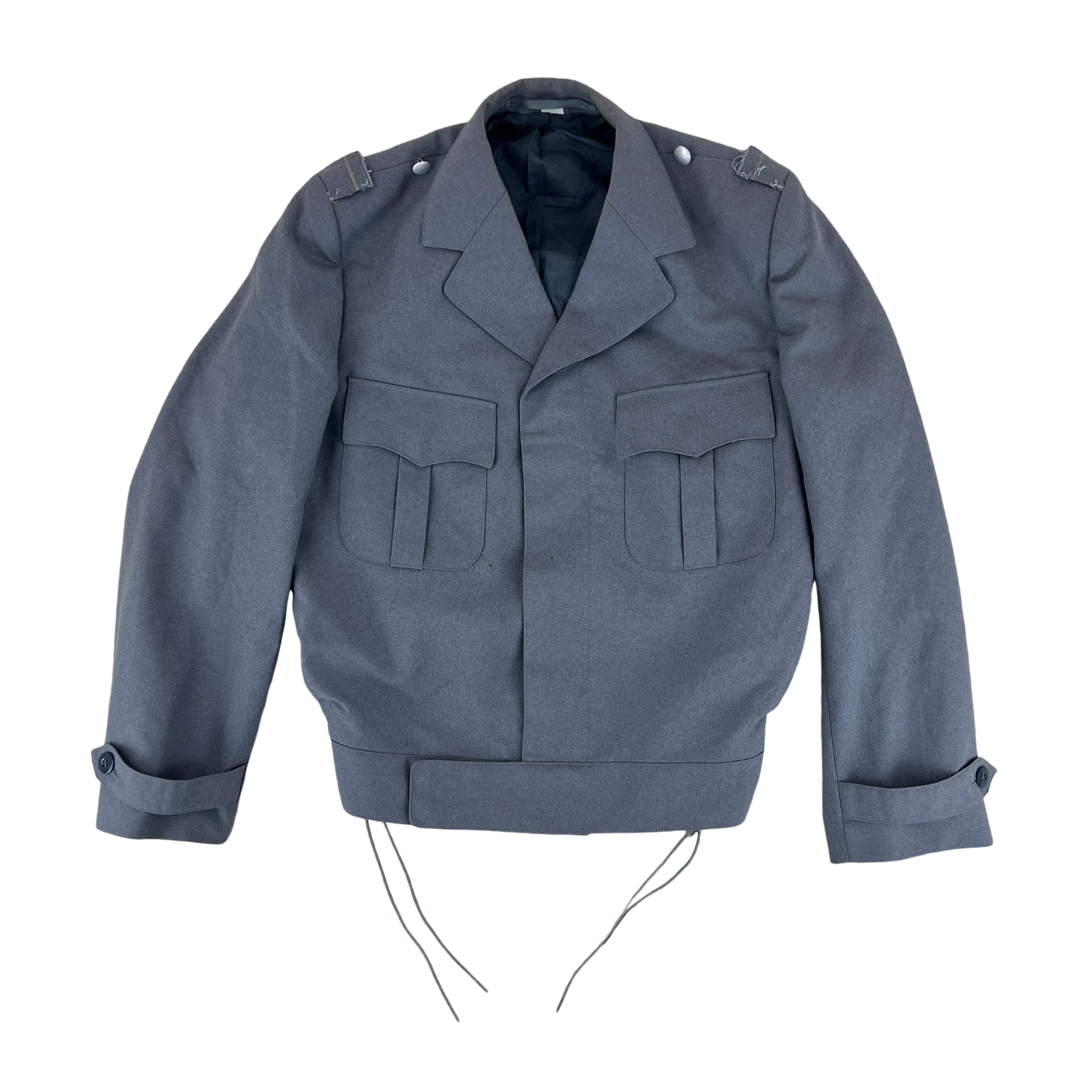 - Grade 1 - Good condition with general signs of prior use. Shoulder boards have been removed by the previous owner. Some markings on the collar and front. See photos but over all in good shape with no holes.